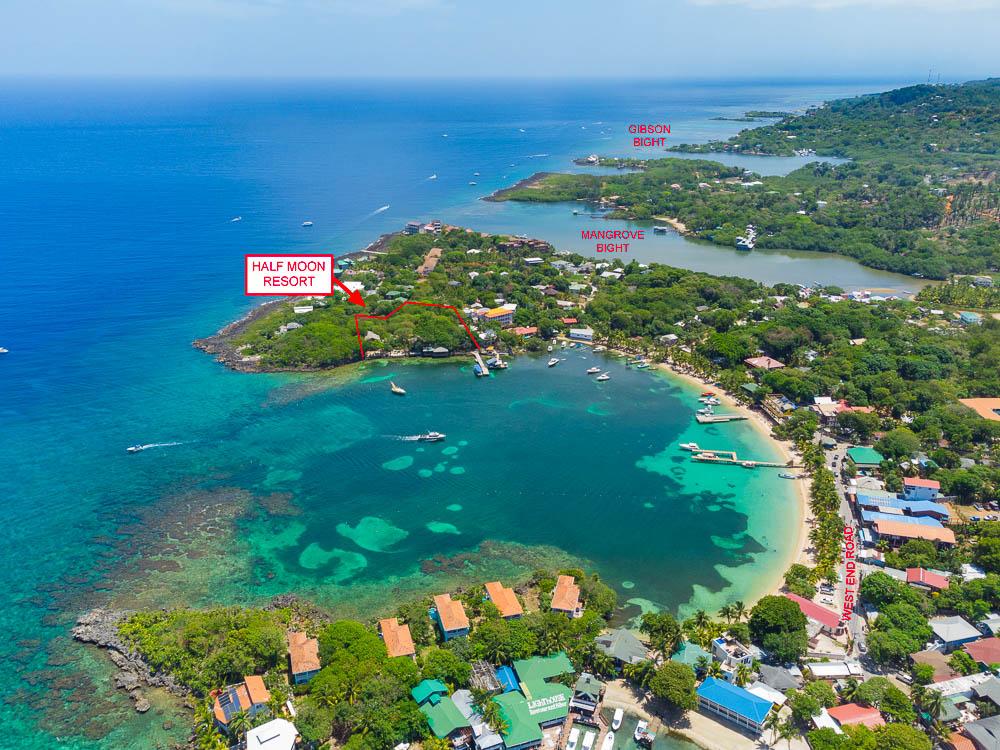 Perfect development land for boutique dive and beach resort located on Half Moon Bay in West End, Roatan could be your perfect resort or development opportunity. Formerly a 2nd generation family owned resort is ready for a buyer to take it to the next level. The crown jewel is the location with over 70 meters of waterfront on Half Moon bay this 1.5 acre parcel has a dock and small beach making it a unique option for West End. Cabins, hotel rooms, restaurant bar and dive center buildings all on site.