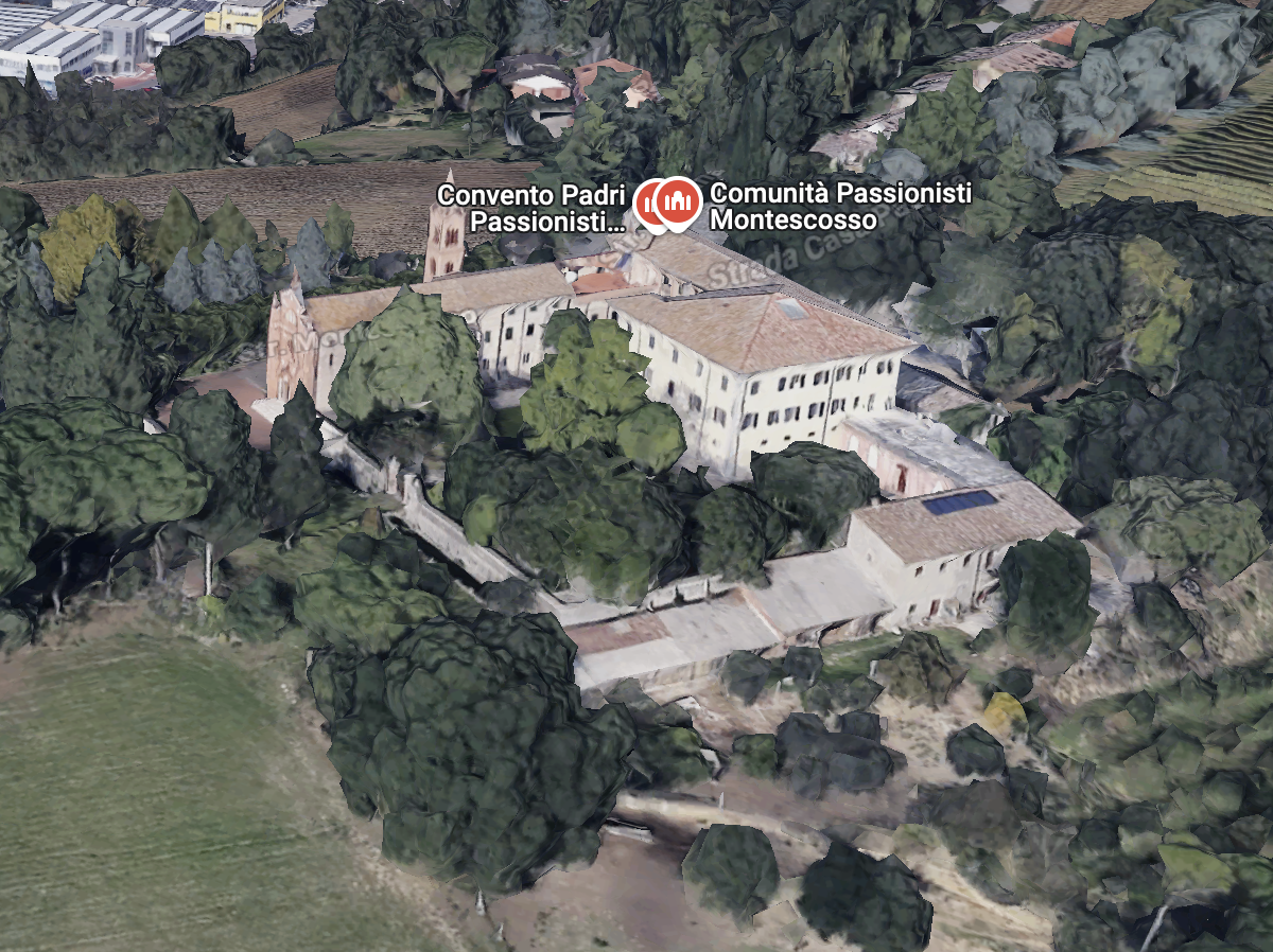 The convent of Montescosso is a donation of two nobles: the Counts Riccio Ricci and Virginia Macchi of Rieti. The donation was made by the count after the death of his wife, in her memory and by her will. In 1895 the count wrote Passionists and a Father left the Sanctuary of the Madonna della Stella (PG) to officiate at the chapel. In July 1898 other religious (two priests and two brothers) went there. At the beginning there was no shortage of difficulties related to the forced cohabitation of the religious community with the family of Count Ricci. Meanwhile, in August 1898 the apostolic rescript was issued for the canonical opening of the Retreat which was named after St. Joseph. After the death of Count Ricci in November 1917, the villa was entirely at the disposal of the Passionists. Various adaptations were made, although the villa did not have the architectural characteristics of a convent. In the meantime, a church was thought of and it was erected to a design by the engineer Belletti of Cesena, the expenses being borne by the Passionist Fr. Luigi Besi drawing the necessary from the family patrimony.