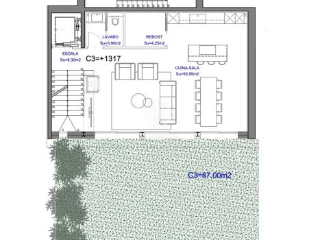 On the main floor , the day area is arranged, with an open-plan living-dining room with an integrated kitchen to maximize space. In addition, it has a pantry and a guest toilet. The living room area has access to the wonderful garden with grass.