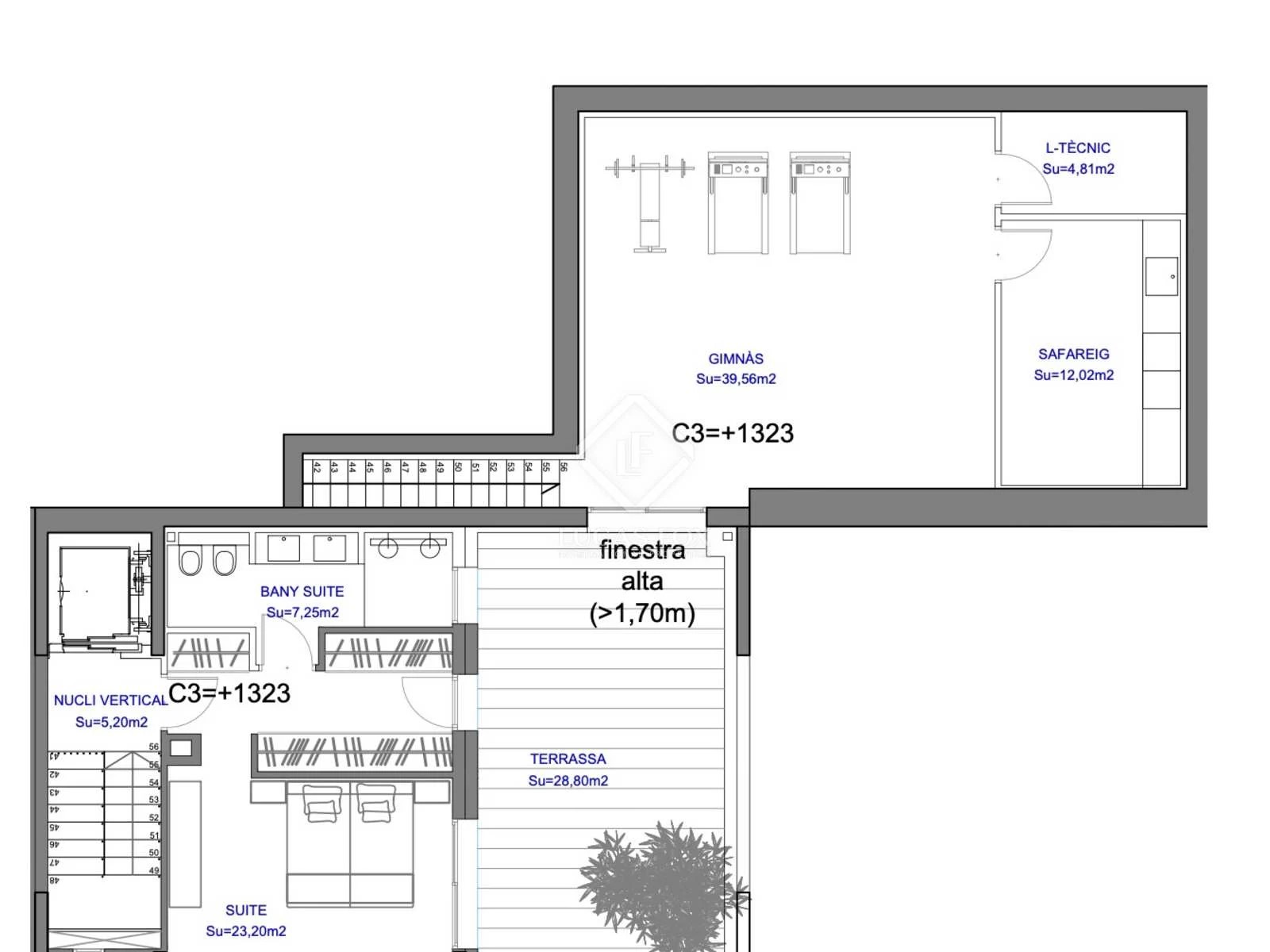The bathrooms and kitchen include the best equipment. The bathrooms feature equipment from the Catalano and Roca brands, glass screens and Grohe taps. The kitchen features large-capacity wall and base units, a Neolith countertop and energy-efficient Siemens brand appliances , including an oven, microwave, induction hob, extractor hood, refrigerator and dishwasher.