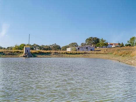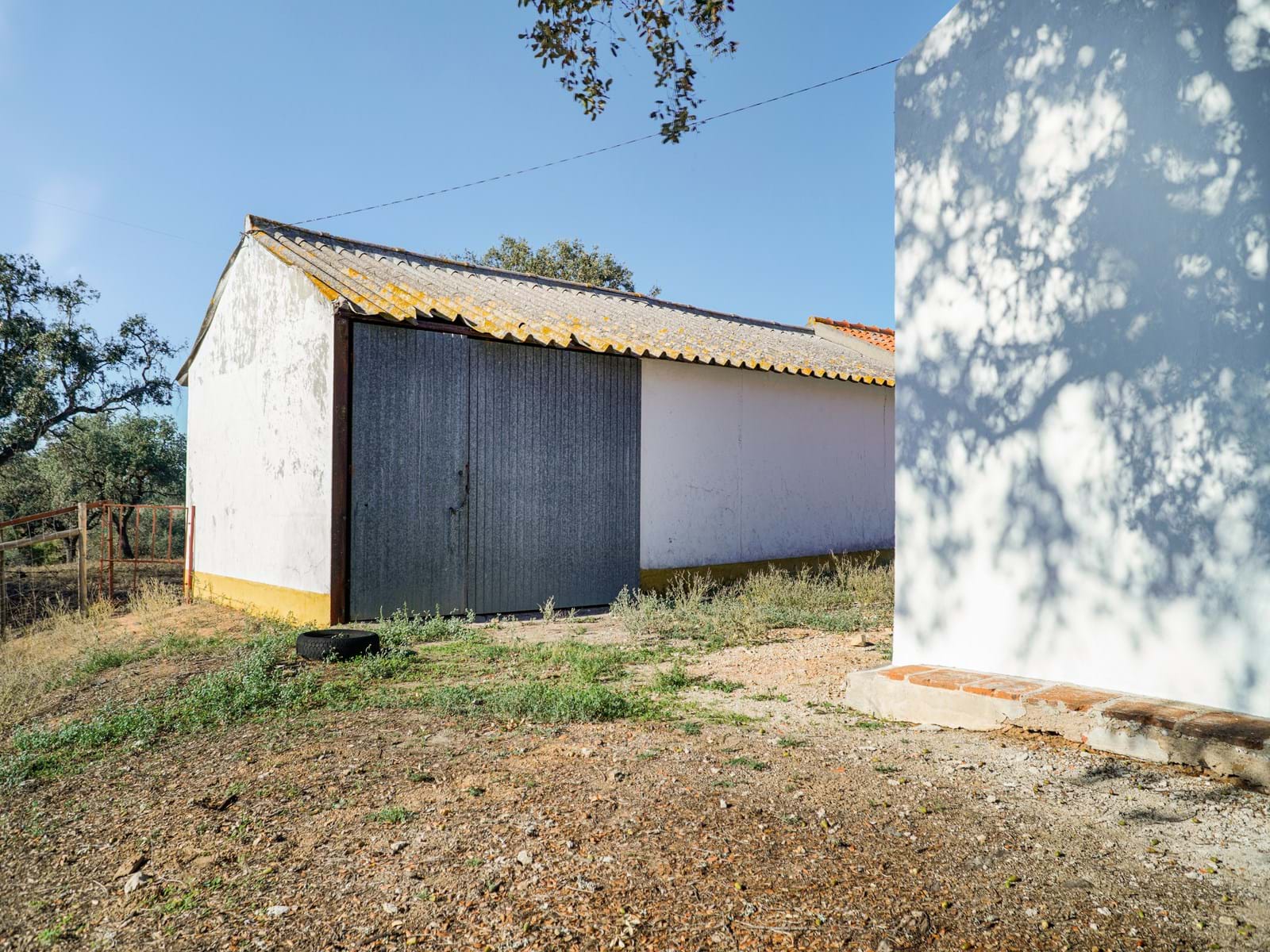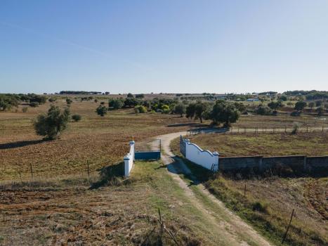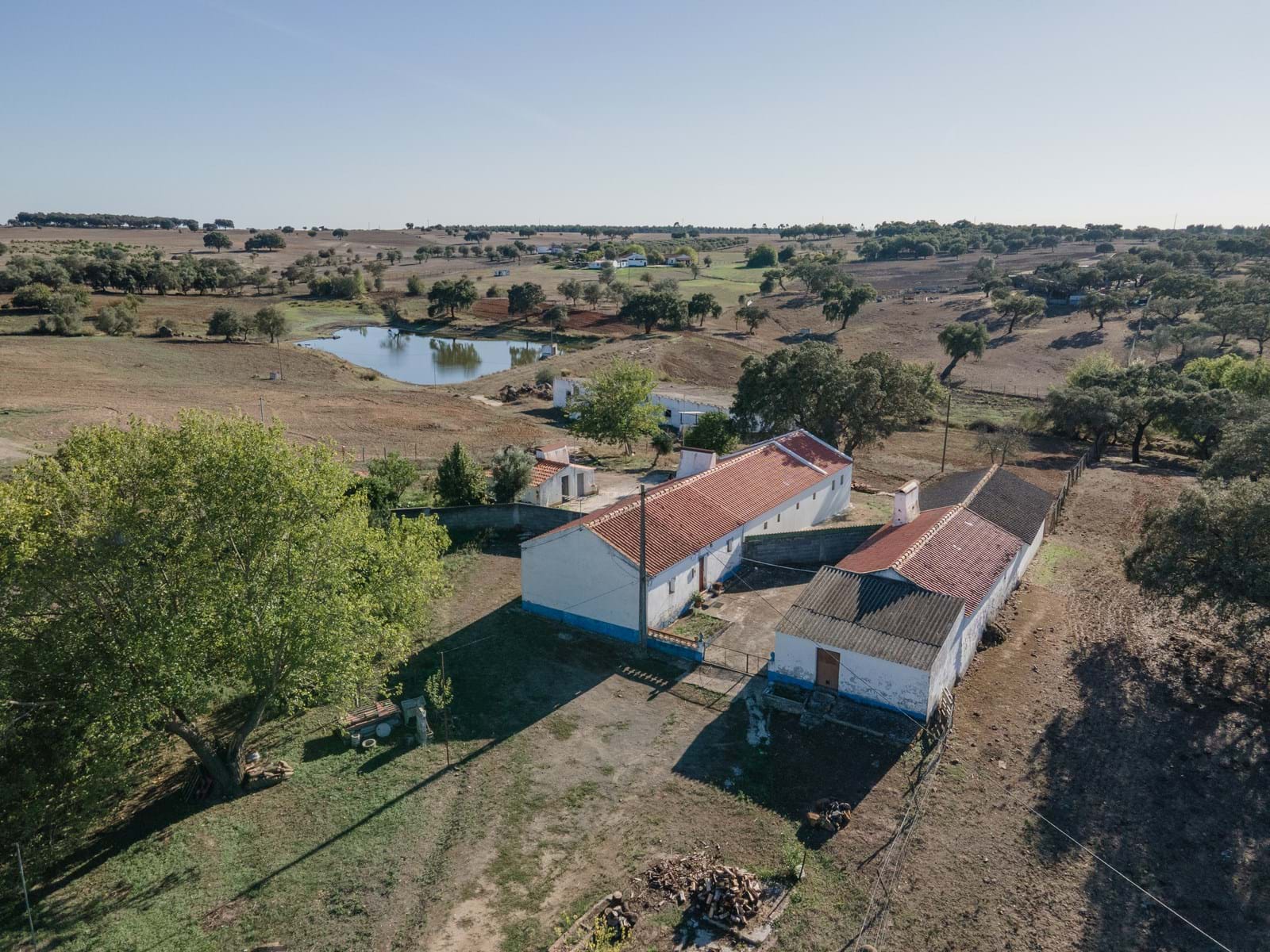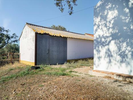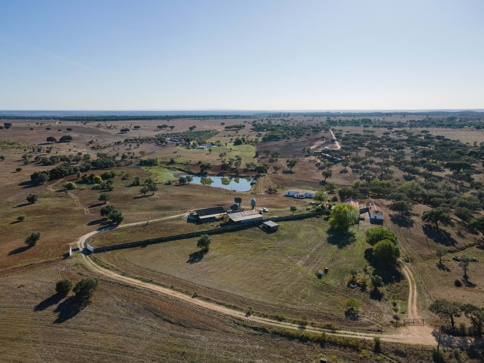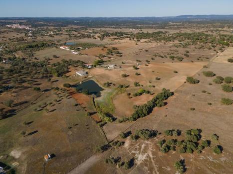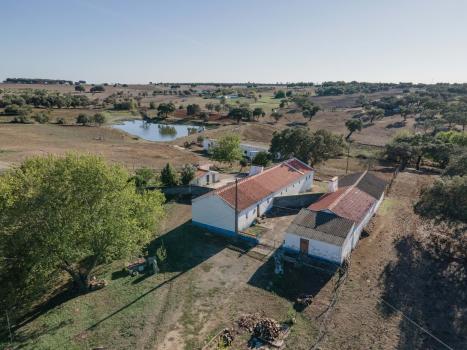 The small dam, which feeds the Ribeira de São Cristóvão, and the two boreholes guarantee water resources. The land is cultivated with pumpkins, wheat, barley, melon and watermelon, while olive trees and cork oaks add charm to the property. It also has a 20,000-liter tank, a silo, and structures for pig farming and cattle and horses.