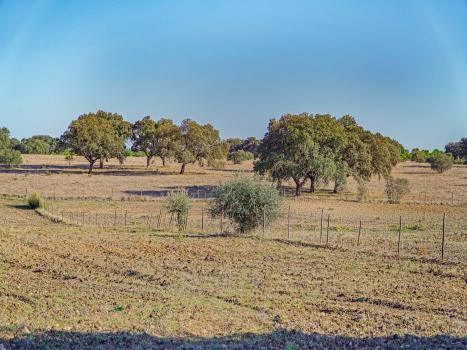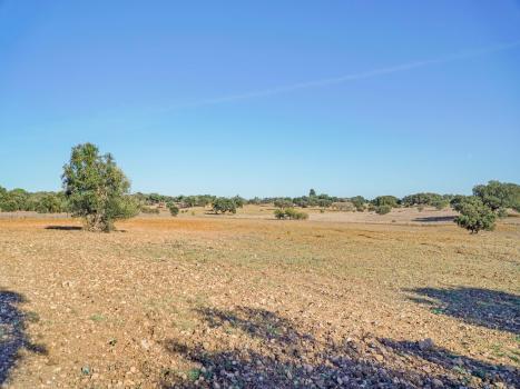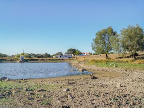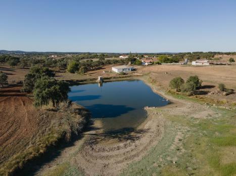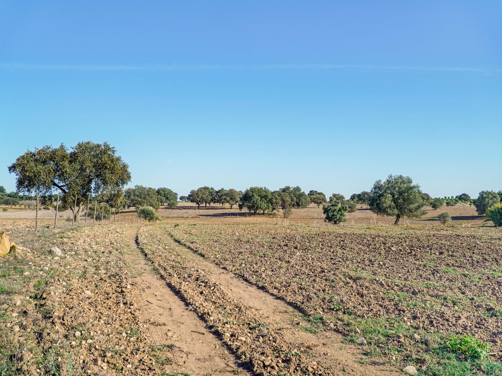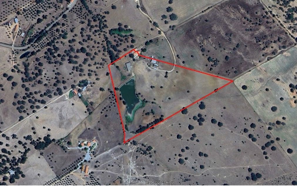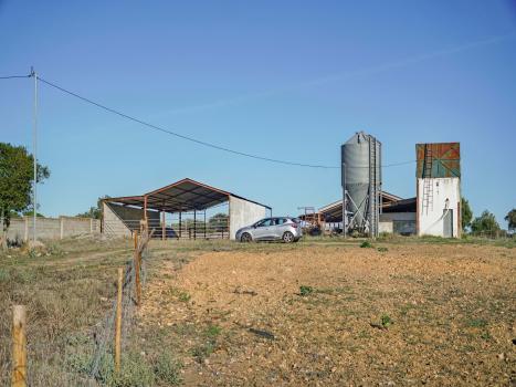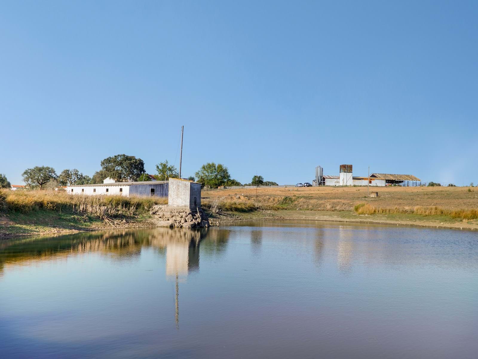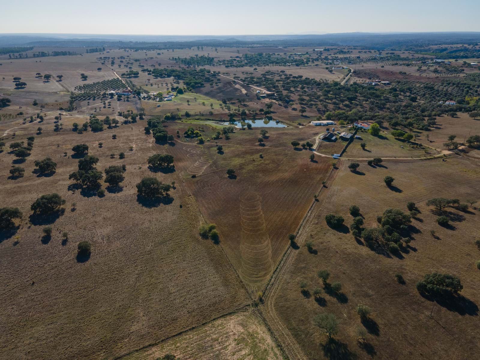 The small dam, which feeds the Ribeira de São Cristóvão, and the two boreholes guarantee water resources. The land is cultivated with pumpkins, wheat, barley, melon and watermelon, while olive trees and cork oaks add charm to the property. It also has a 20,000-liter tank, a silo, and structures for pig farming and cattle and horses.