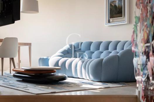 Finally, at the top, the fifth level houses a 50 m² living room, a veritable jewel case suspended over the horizon, offering an unforgettable view of the Mediterranean.