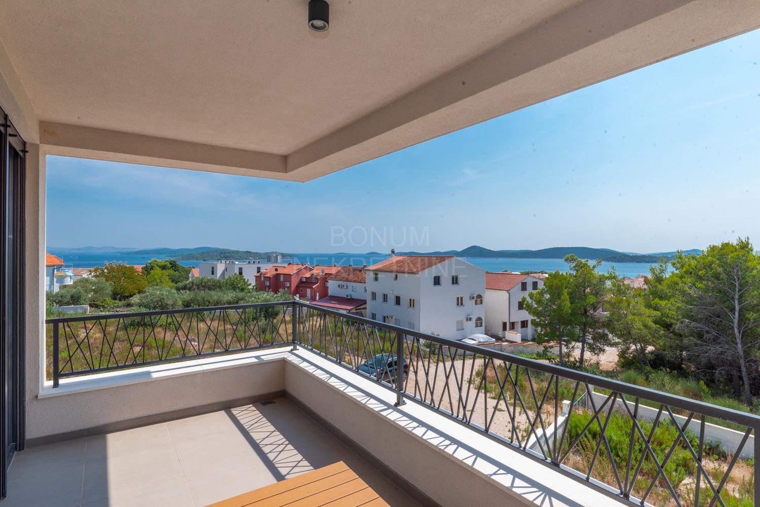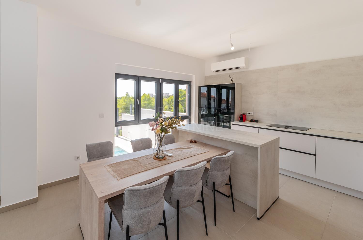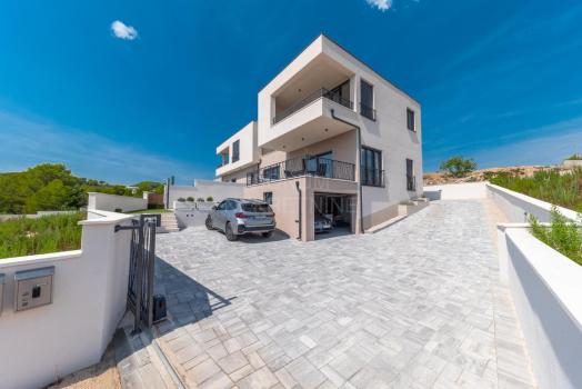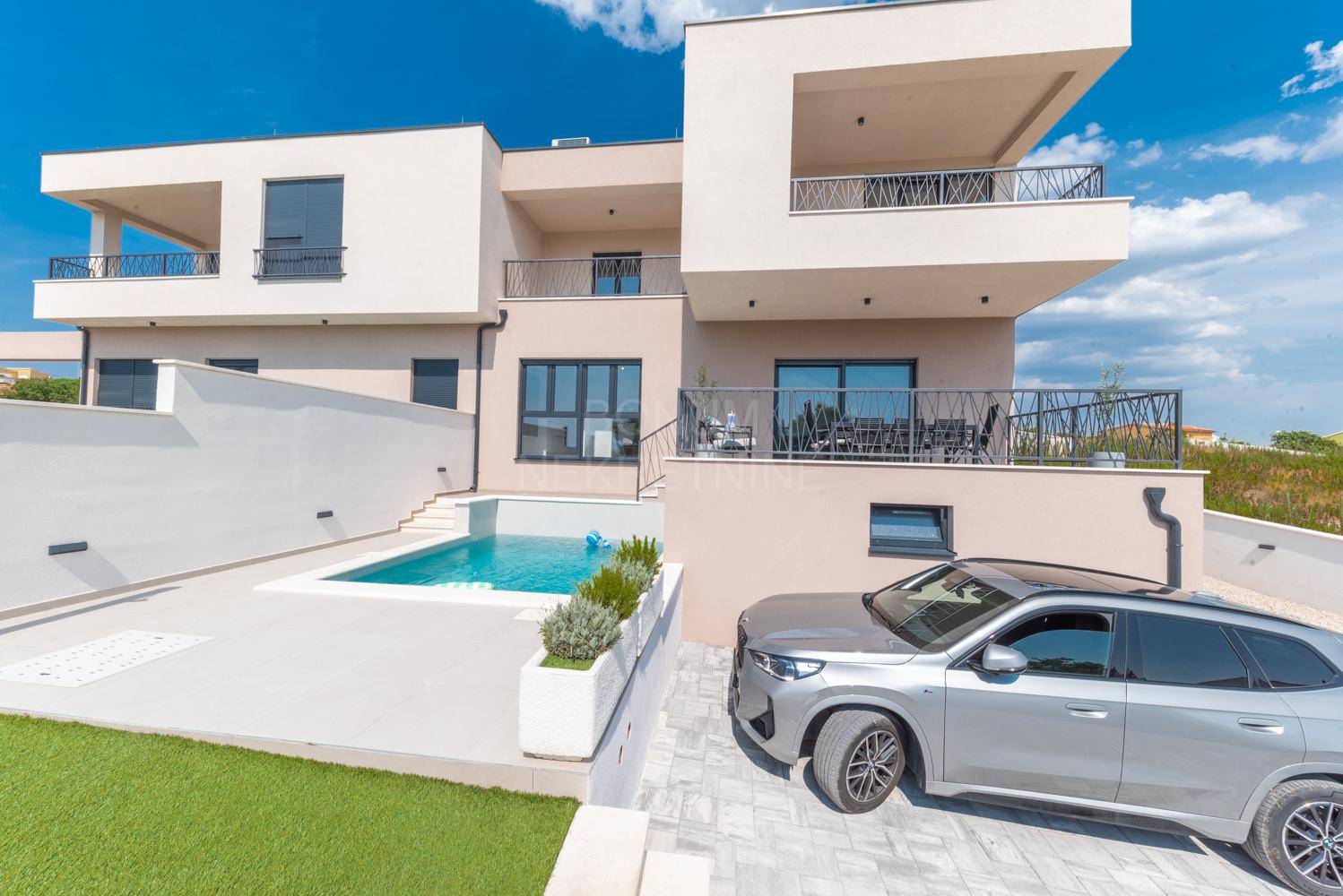 A superb modern house for sale with a private pool and a panoramic view of the sea, located in an ideal location in Vodice, just a few minutes' walk from the beach and the city center.