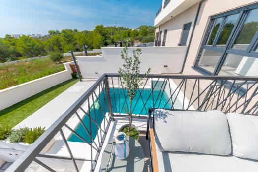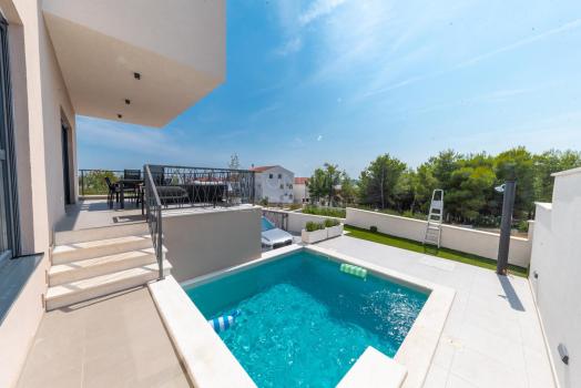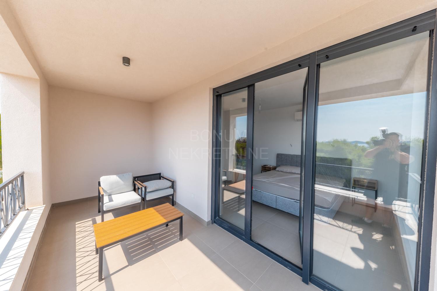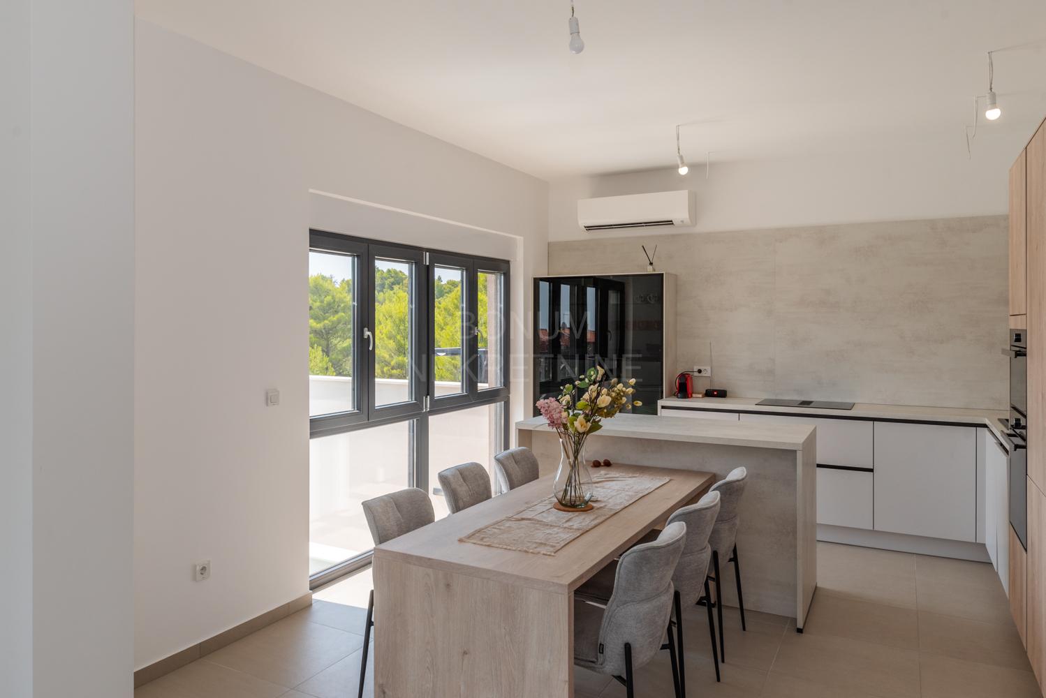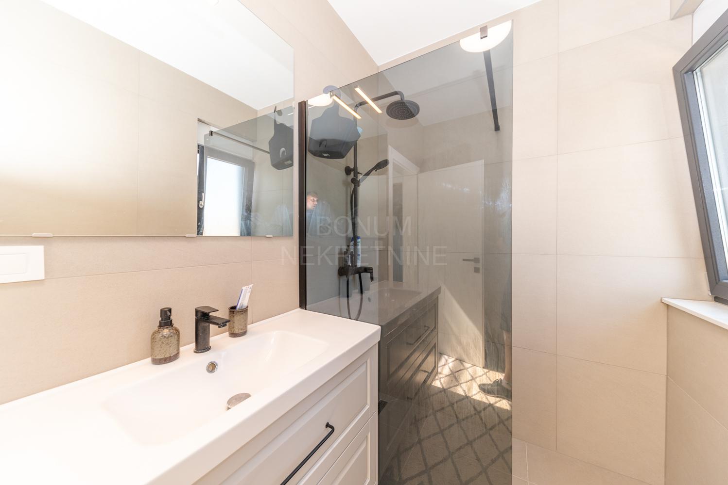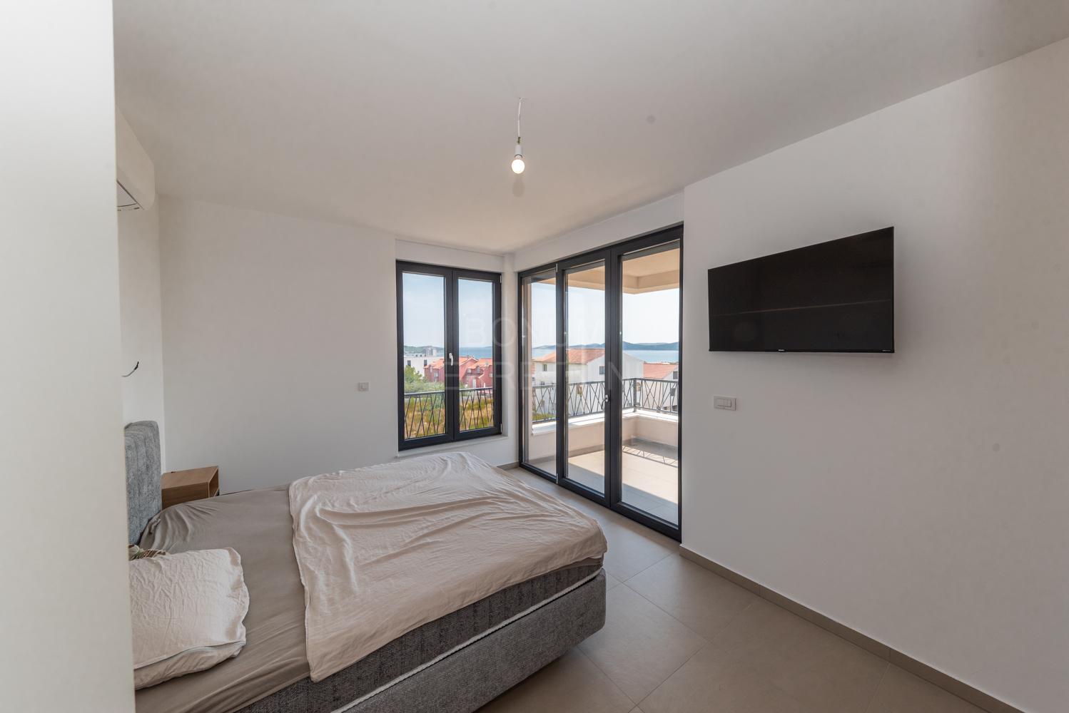 A superb modern house for sale with a private pool and a panoramic view of the sea, located in an ideal location in Vodice, just a few minutes' walk from the beach and the city center.