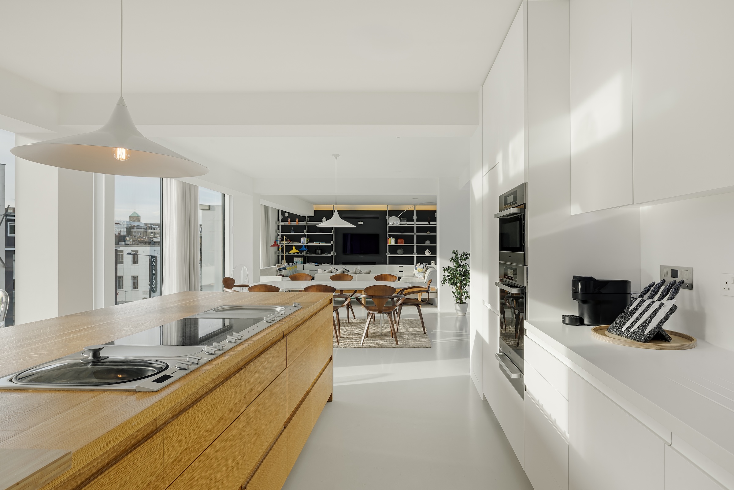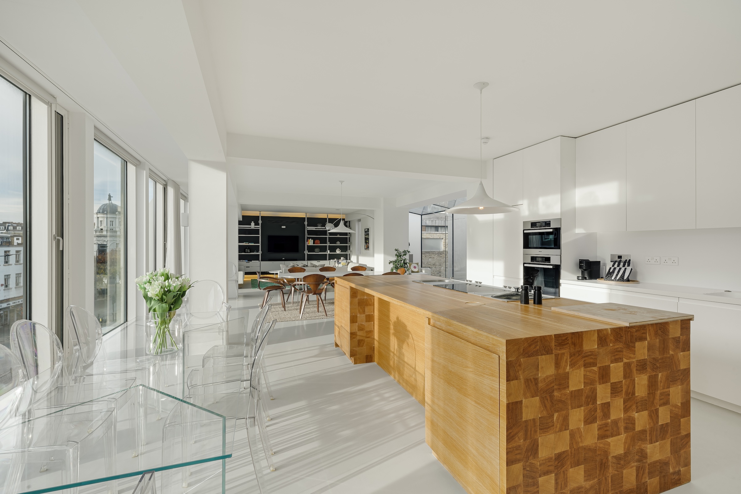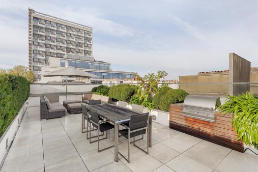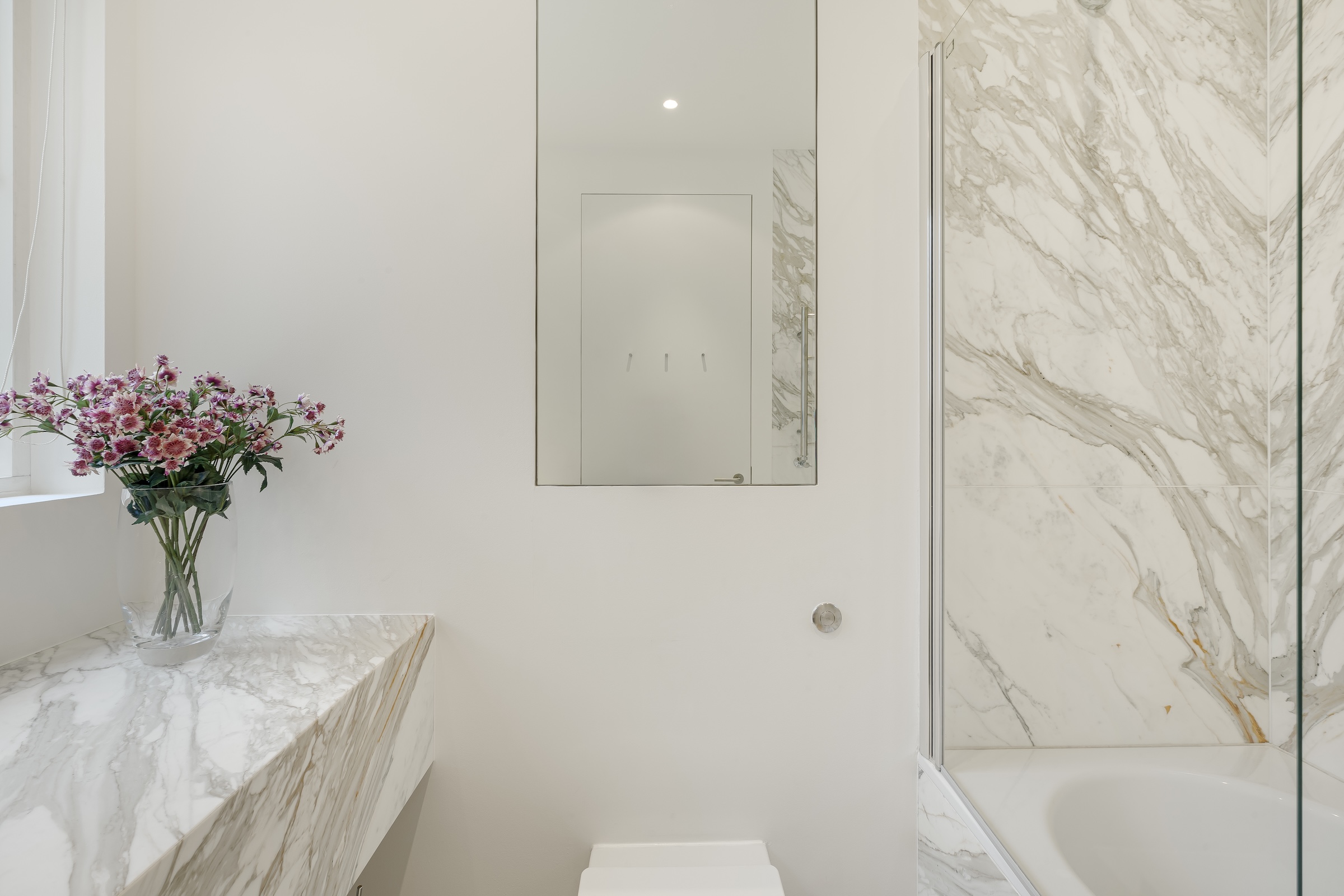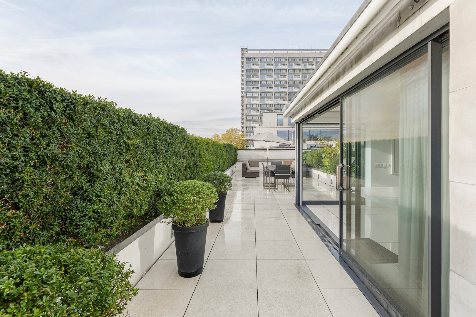 Set in the heart of Notting Hill, this exceptional home spans 3,717 sq. ft. and is laid out across three floors, comprising four bedrooms, four bathrooms, and a sophisticated open-plan kitchen and reception. Crowned by a private roof terrace, the residence benefits from sweeping views of West London’s skyline. The second floor hosts three of the four bedrooms and an additional guest bathroom, forging discreet living quarters. The generous master bedroom is flanked by an ensuite bathroom designed for a spa-like experience, with a free-standing tub and marble finishes. The open-plan kitchen and family room occupy the third floor, making for a dedicated entertaining area. Well served by full-wall windows and gallery-like proportions, the space is vast and bright. A lovely wooden island takes centre stage in the kitchen, creating a stylish culinary space. The reception, finished in a mid-century aesthetic, lies on the other end of the floor. The dining area is nestled between the reception and the kitchen. There’s also a cosy study on this floor. There’s an additional ensuite bedroom on the fourth floor opening directly into the terrace, making for an enviable retreat. It can also be used as a games room or an entertainment lounge. The crown jewel of this residence is the roof terrace, which has minimalist furniture, pale marble tiles, and manicured bushes. Peering over the vibrant streets of Notting Hill Gate, the space is a picturesque venue for outdoor gatherings. The home is entirely finished in fresh hues, complemented by wooden flooring and modern furnishings throughout. A lift and private entrance are further highlights. The home also comes with a 999-year lease. Notting Hill Gate is one of London’s most iconic addresses, known for its charming markets, cafes, and pastel-hued homes. The fine offerings of West London, from award-winning restaurants to boutiques and cinemas, are within easy reach. Transport links are exemplary, with Notting Hill Gate Underground station a short walk away.