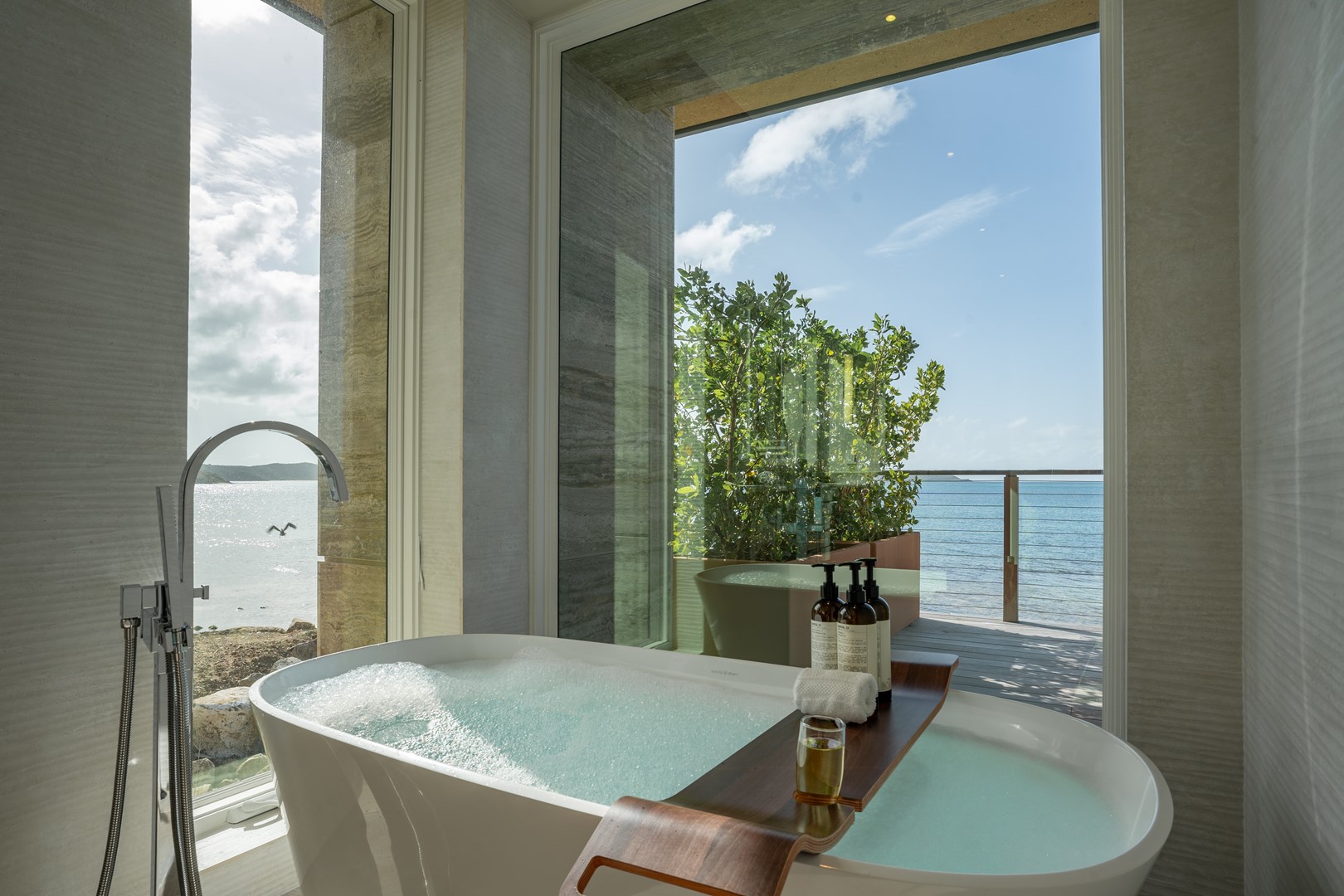Positioned right at the water’s edge with zero setback, Ocean Villa 2 is a tropical retreat unlike any other you will experience across the Caribbean. This three-bedroomed developer designed home owns a staggering 120 feet of luxury ocean frontage, meaning each and every living space has an uninterrupted sea view. Floor to ceiling glass doors and windows frame endless ocean views and open up onto an expansive overwater deck and sparkling infinity swimming pool.