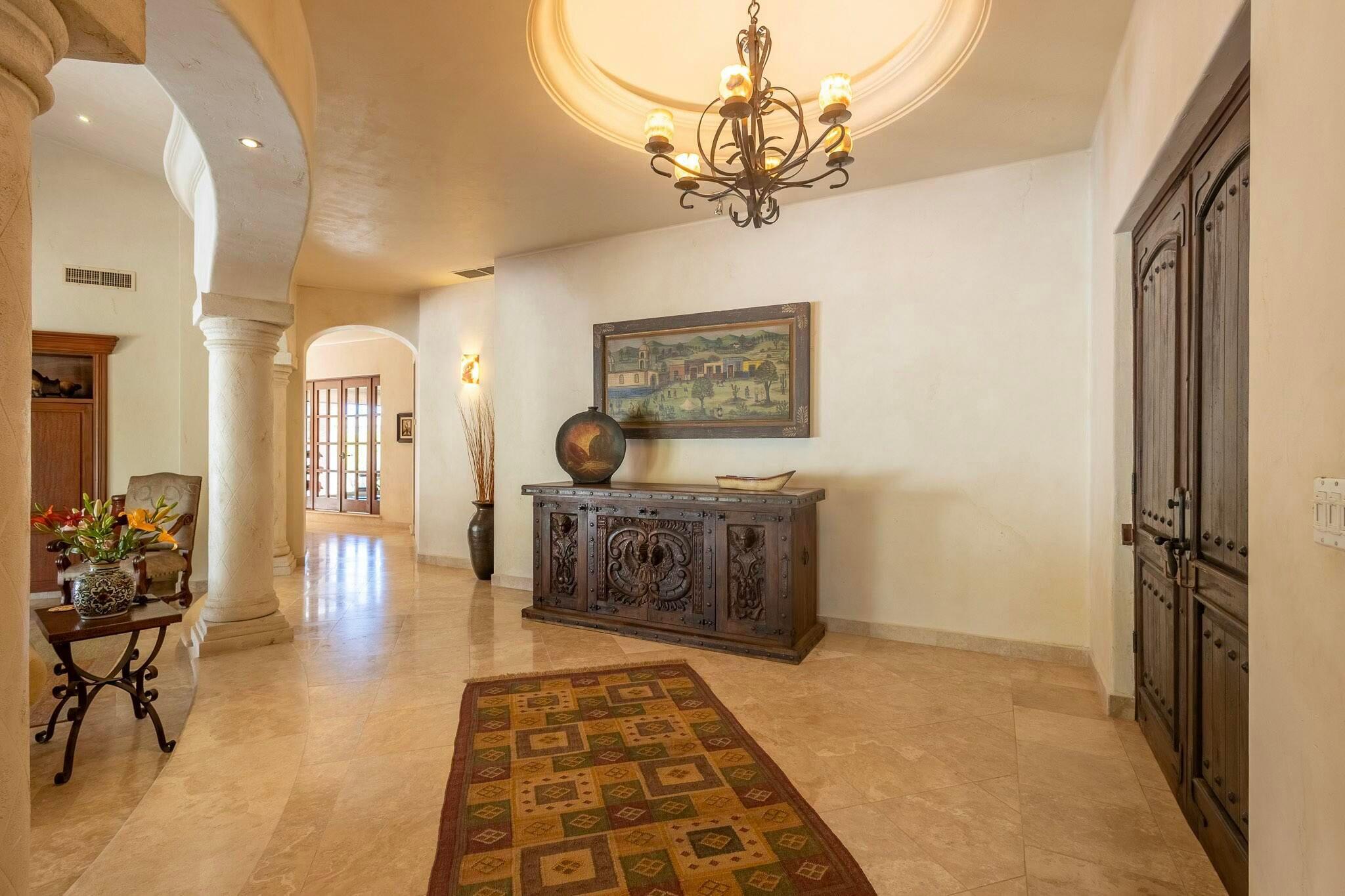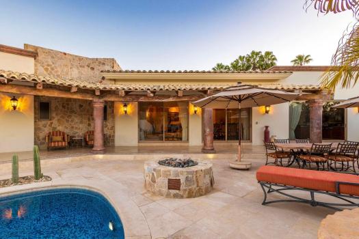 Fairway front home located on one of the most coveted streets in Palmilla Estates, this beautiful ranch-style, single-level home offers unparalleled privacy and breathtaking views. Perched above the canyon with direct sightlines down to the ocean, this property seamlessly blends luxury, comfort, and tranquility. Situated on a spacious and private lot, the home features a detached casita, a guest bedroom inside, and a primary suite with stunning ocean views. A fully equipped gym provides the flexibility to be converted into a fourth bedroom if desired. Outside, a large pool, fire pit and expansive patio are surrounded by a beautifully designed desert landscape, creating a serene and peaceful retreat.
