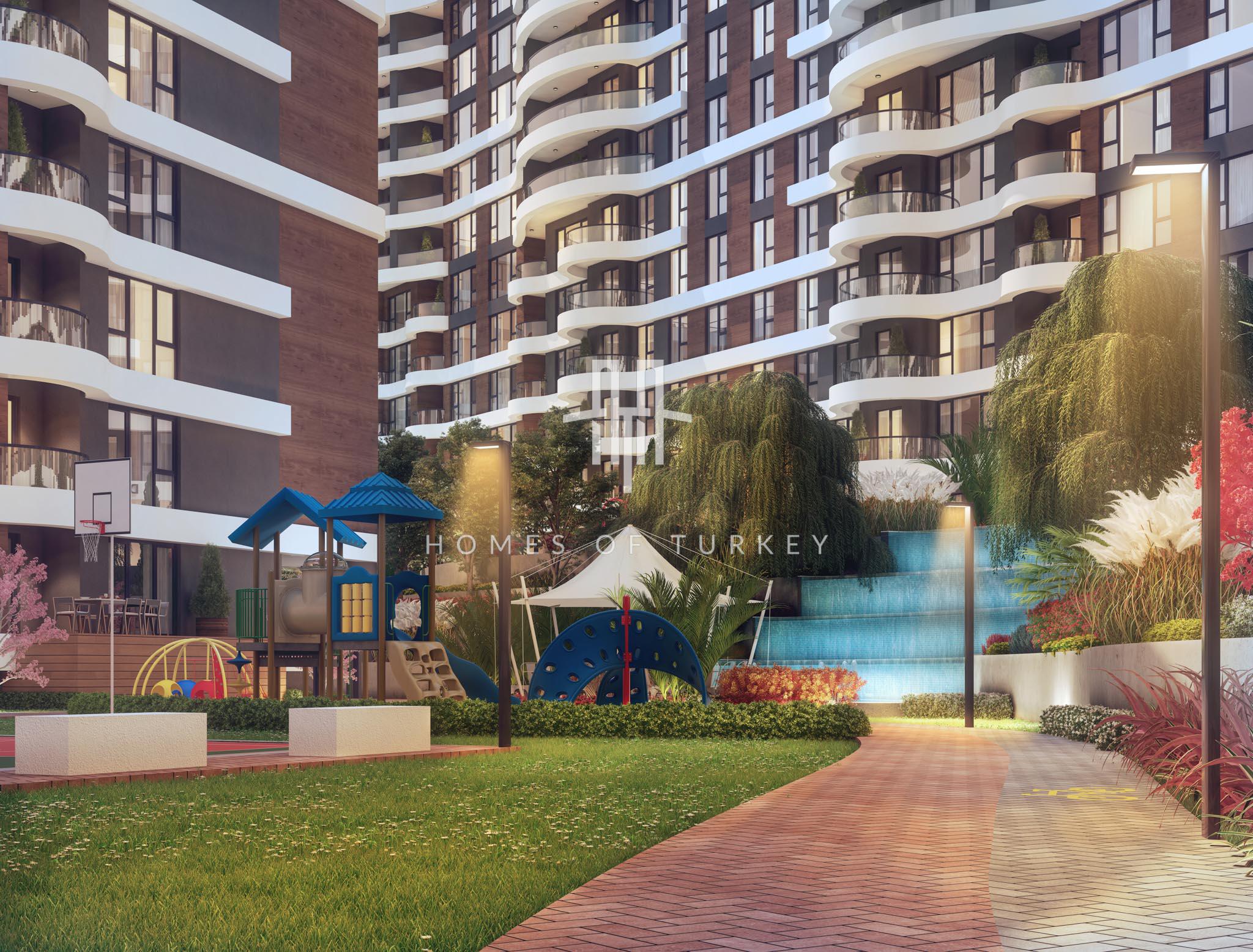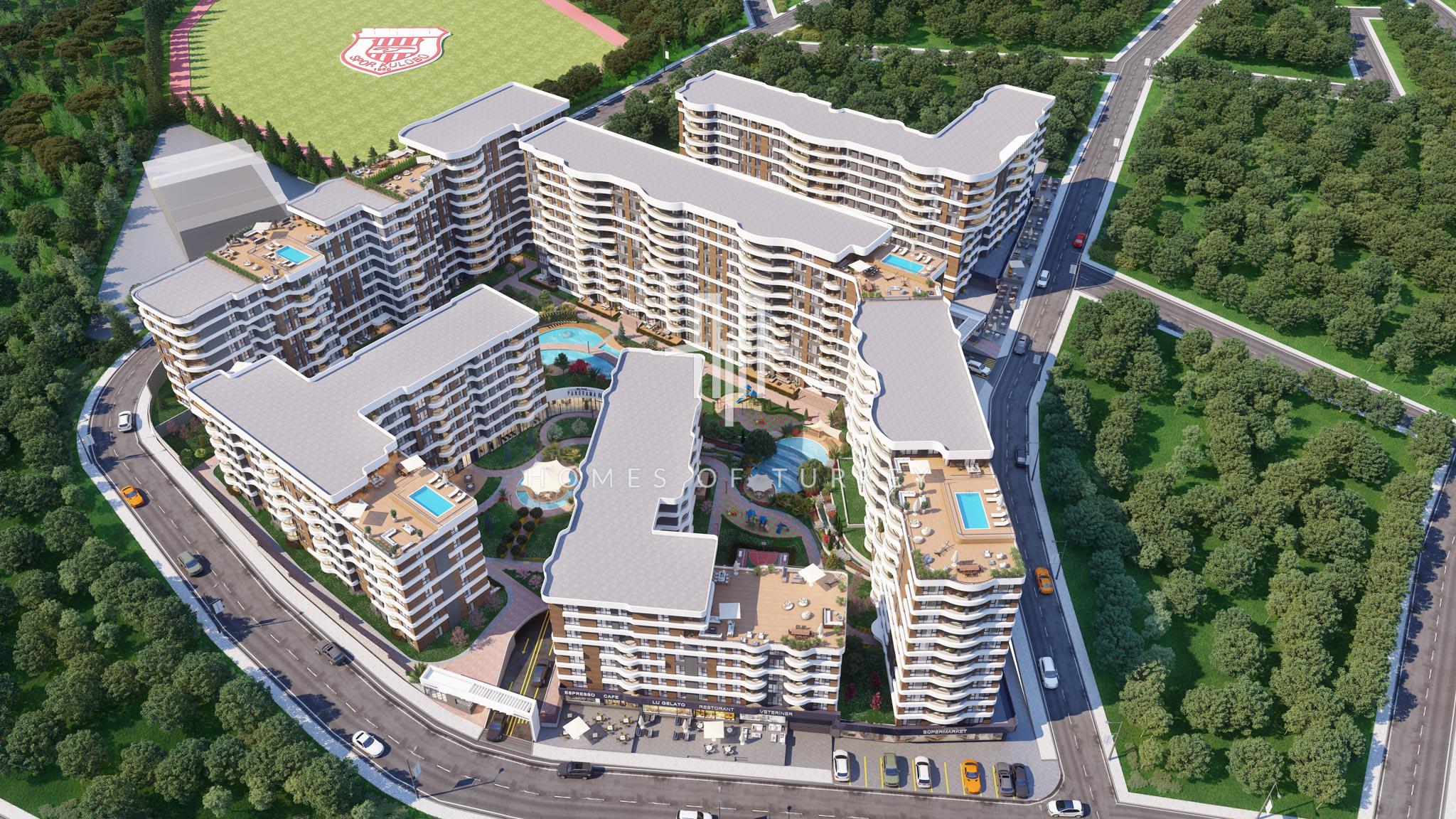 The special project consists of 175,000 square meters of construction area, 640 flats and 22 luxury commercial areas. In this special project, an outdoor pool with a view of the islands, indoor pool, basketball court, volleyball court, tennis court, bicycle path, sauna, spa, Turkish bath, gym, 5 playgrounds, cafeteria, library, pocket cinema, vip meeting room, indoor There are many ultra-luxurious social facilities such as children's playgrounds, special scent gardens, waterfall ornamental pool, smart home system, indoor and outdoor parking, security and 24/7 security camera.