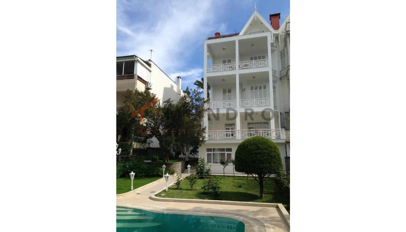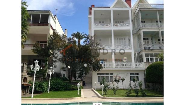 The villa for sale is located in Adalar. The Princes' Islands are located at the height of Istanbul's asian district of Maltepe. The islands have in total about 17.000 inhabitants. They derive their name from the ottoman tradition of banishing the male children of a sultan when his successor took over office. A special feature is the lack of internal combustion engines. Transports take place either with electric scooters or electric cars of all kinds or of course by bicycle. The nature on the islands is very very beautiful. Despite a good infrastructure they are not overly crowded, which would be expected in view of the million strong metropolis of Istanbul at the doorstep. Each island has got a variety of beaches for swimming. Especially well-known for their fish restaurants and evening events are Buyukada (area 5.4 km²) and Heyebeliada (area 2.3 km²). Every day there are a variety of ferries and speedboats between Istanbul's various neighborhoods and the Princes' Islands.