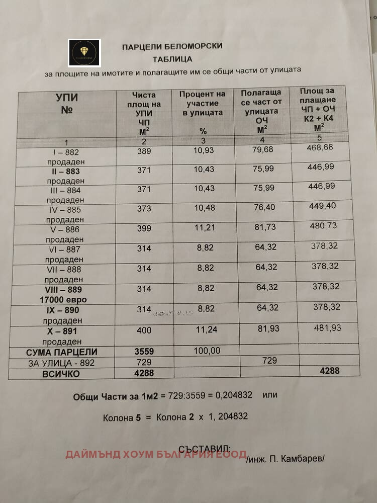 🙏 With every deal, we at Diamond Home help! 💎 We donate a percentage of our commission to the Trust Believe - an organization that supports people fighting cancer. We believe that together we can do more than just business - we can give hope. ❤️ We offer for sale a regulated land plot (RIP) with a total area of 378.32 sq.m., located in the Belomorski quarter, Belaya Voditsa neighborhood. Of these, 64.32 sq.m. represent an adjacent street, ensuring easy access to the property. Property parameters: - Plot shape: 14 m - Length: 22.4 m - Purpose: for residential construction - Maximum height of construction: up to 10 m - Density of construction: 50% - Type: 1 The property has electricity to the plot. There are already built houses around, creating a cozy and pleasant atmosphere, suitable for building your dream home or investment development. 💎 Our mission is to create trust with you by providing top-notch service! 💎 We have over 1000 properties! 💎 The services we offer: - Consultation with a senior broker - Assistance from a credit consultant regarding financing - Negotiation of the most favorable conditions for you - Preparation of all necessary documentation for the deal - Cooperation with a certified lawyer in the field - Property management of any kind 💎 For information or viewing of this or another property, do not hesitate to contact us! OFFER NUMBER: 239805