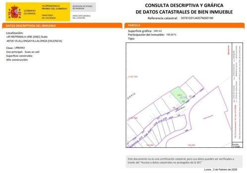Grupo Avis Real Estate vende suelo urbano no consolidado de 239 m2, de uso residencial, en venta en el municipio de Villalonga, Valencia.