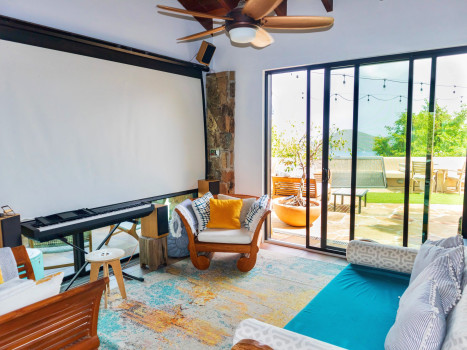 Carefully situated on 0.86 acres with arguably one of the best, if not most impressive, views of the North Shore available. The house itself has views across the hillsides of Tortola, and towards the pristine White Bay beach on Guana Island. Comprising of 3 bedrooms, the house is stylishly finished and epitomises the natural indoor-outdoor lifestyle many look for in BVI property. The house emulates the pod style accommodation prevalent throughout the Caribbean with expansive terraces offering great entertaining space and an inviting dipping pool between the living accommodation and the master bedroom suite. The master suite is sophistically finished with floor to ceiling glass panels allowing maximal light entry and true fluidity between indoors and outdoors. From the master suite, a further sun terrace opens up to draw on the exceptional views on offer. Two further bedrooms are accessed by stairs from the primary deck or from the parking area, with a jack and Jill bathroom between them.