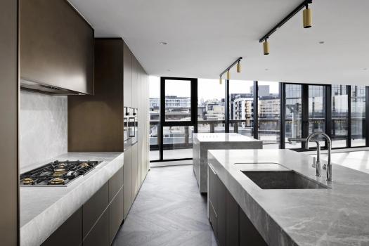 Wonderfully oversized living domains are underpinned by state-of-the-art kitchens showcasing high-quality Gaggenau appliances, sleek stone surfaces, and plenty of preparation and presentation space. Sun-swept balconies and private terraces extend the interiors with a seamless transition from inside to out.