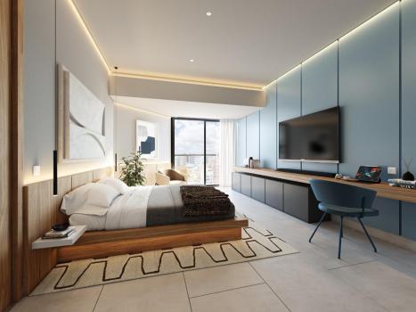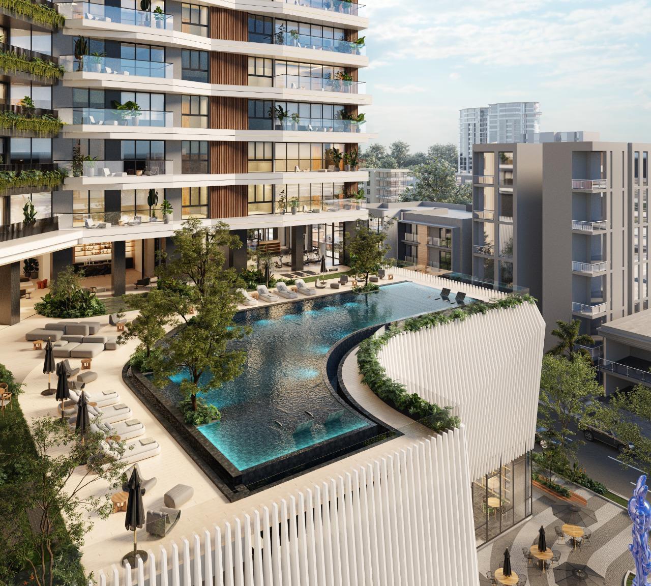 The social area will be located on the 6th level, with wide views of the entire central polygon, and has a gym, swimming pool, lounge bar, coworking, kid's place, teen's place, planters and open terrace.