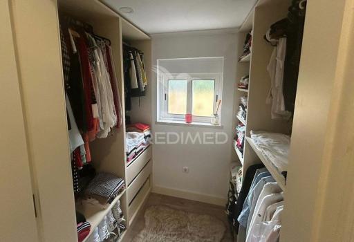 Suite principal com closet privativo (18,70 m²) e casa de banho completa (3,90 m²).