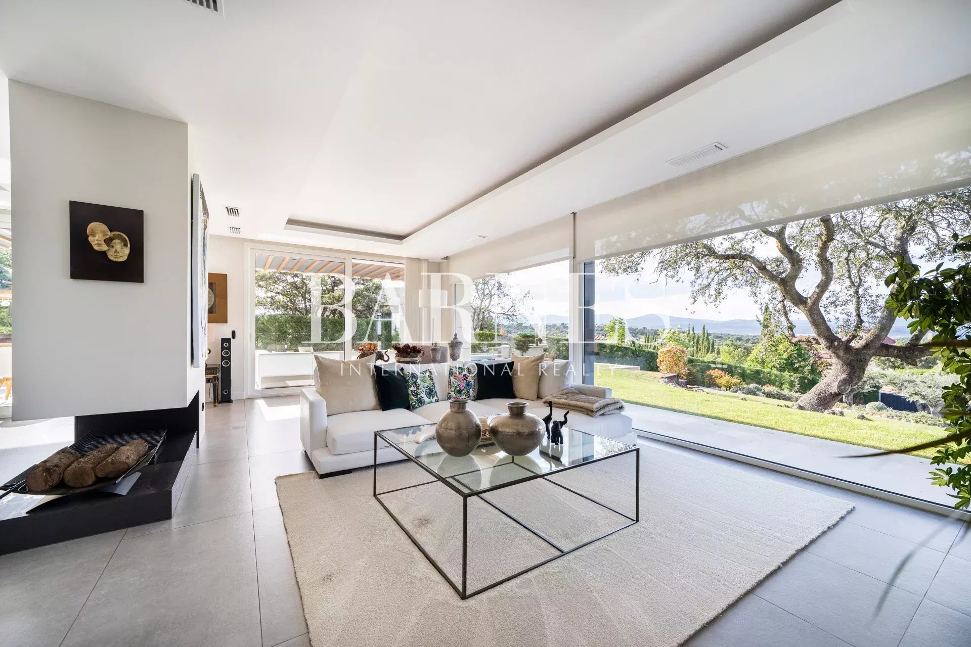 On the upper floor, there are three spacious en-suite bedrooms. The master bedroom has access to a large terrace overlooking the pool and natural landscape. Additionally, a separate office offers the possibility to convert it into a fourth bedroom.