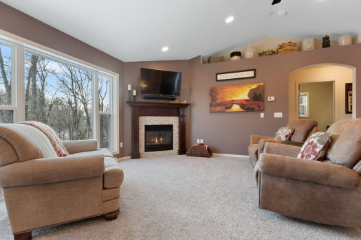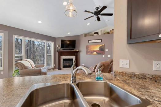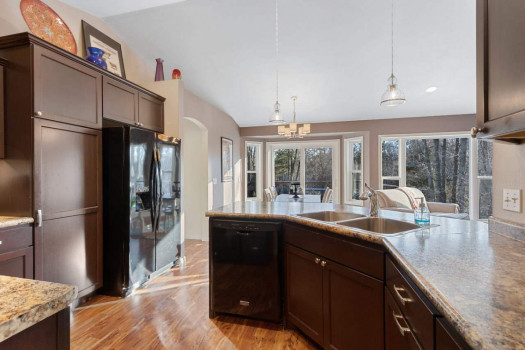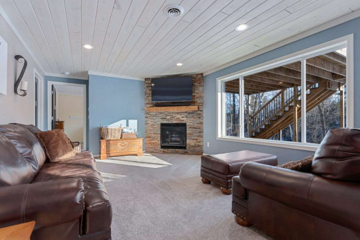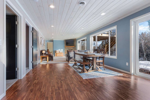 Custom home set on top of a wooded lot overlooking the Red River. Enjoy your morning coffee to captivating views and an abundance of wildlife right in your backyard! Inside this trendy home you will find lockers in the entryway, tons of natural light, 2 fireplaces, an open concept, vaulted ceilings, large master suite, and tastefully contrasting white trim with black doors that dress up and complete this home. Notable features include dual vanity and jetted tub in master bath, split bedroom design, custom built-in desk in the office, walkout LL with whitewashed shiplap style ceilings, oversized garage doors, ample storage, and so much more!