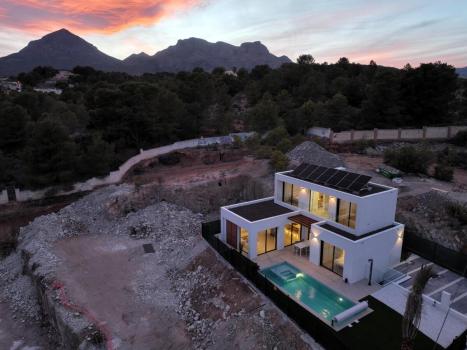 New Build private urbanization of 12 villas with their own swimming pool and garden, located in one of the most exclusive areas of the Costa Blanca, Alfaz del Pí. New Build exclusive development that offers you a unique, familiar and natural environment in a privileged area close to all the necessary services to offer you tranquility and wellbeing. The unique design of its wooden structure, with straight, Mediterranean lines, gives it the warmth and harmony needed to make you feel part of nature while optimizing resources, making the villas more sustainable and efficient spaces. One of our guidelines when creating our development was the integration of our villas in nature, taking into account the surrounding green area, with the intention of increasing your quality of life and maximizing the positive influence on it. Houses designed taking into account the smallest details, its wooden shell, its bioclimatic pergola, the solar panel system and the efficient and stylish mallorquinas offer you the most exclusive option for sustainable housing. Open spaces full of light, great amplitude and no visual barriers, providing a sensation of infinite space. Large windows with direct access to the pool and garden area. The spacious living room with open kitchen makes it the ideal place to share with family and friends. High-quality kitchen units with porcelain worktops and highly energy-efficient appliances. Designed with the aim of providing the maximum harmony and balance necessary for a perfect recovery of both body and mind. With large floor-to-ceiling windows, the master bedroom has direct access to the swimming pool and garden area, which provide the extra comfort and relaxation so necessary for good rest. The bedrooms on the upper floor of the villa have been designed to maximize the astonishing views of the Mediterranean Sea and the beautiful Sierra Helada. Designed to create refuge spaces. The natural and warm tones are the protagonists, providing a sense of purity in the environment, optimising moments of enjoyment and relaxation and disconnection from the outside world. The Italian shower, the taps with water consumption reduction system, the furniture with built-in washbasins and the suspended sanitaryware make up a functional space positioning us at the forefront of the sector. Unique and innovative project based on minimum environmental impact promoting lower CO2 emissions in its construction, minimum energy consumption and a more sustainable and efficient use of resources. Project takes an important step towards environmental awareness. The wood used in the whole shell of our villas comes from forests whose logging is authorized and ensures reforestation, sustainability and protection of biodiversity. The use of this material in the construction of your new home brings with it a series of advantages that have a direct impact on both your wellbeing and the construction quality. Our homes are highly energy efficient, offering greater thermal and acoustic insulation, while maintaining the quality of the air inside the house and providing ideal natural lighting. The materials used in their construction are of high quality, durable and resistant to fire and humidity. Homes development is located in the well-known Scandinavia area of Alfáz del Pi. Just a few kilometers away lies the beach of Albir, where its crystal clear waters and the Sierra Helada with endless routes and activities makes it considered one of the best areas of the Costa Blanca. Very close to the Villas the urban center of Alfaz del Pí is situated, which meets all the necessary requirements for your new home, such as the extraordinary climate, with more than 300 days of sunshine a year, its gastronomic offer, the quality of its services and the magnificent relationship with the environment. There are also two prestigious Norwegian Schools as well as a Scandinavian club that already exists for half a century.