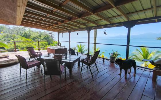 Isla Joya has wonderful elevation over the Caribbean Sea, which is a rare find in Bocas del Toro, where private islands are usually tufts of mangroves! Skirted by a gorgeous coral reef, the island also has access to a deep water bay behind it with a mud/sand mix bottom perfect for mooring your dream boat. Landscaped with mature flowering trees there is plenty of shade on the island, and excellent soil- it is said that the island formed from the Volcanic explosion in the 1400s. With two varieties of coconut, some citrus and some passion fruit, the island is a birder’s paradise where Aricari Tucans visit daily. Views around the island in every direction are exquisite but the South view takes the cake, facing the massive Chiriqui Lagoon and framed by the Cordillera mountain range.