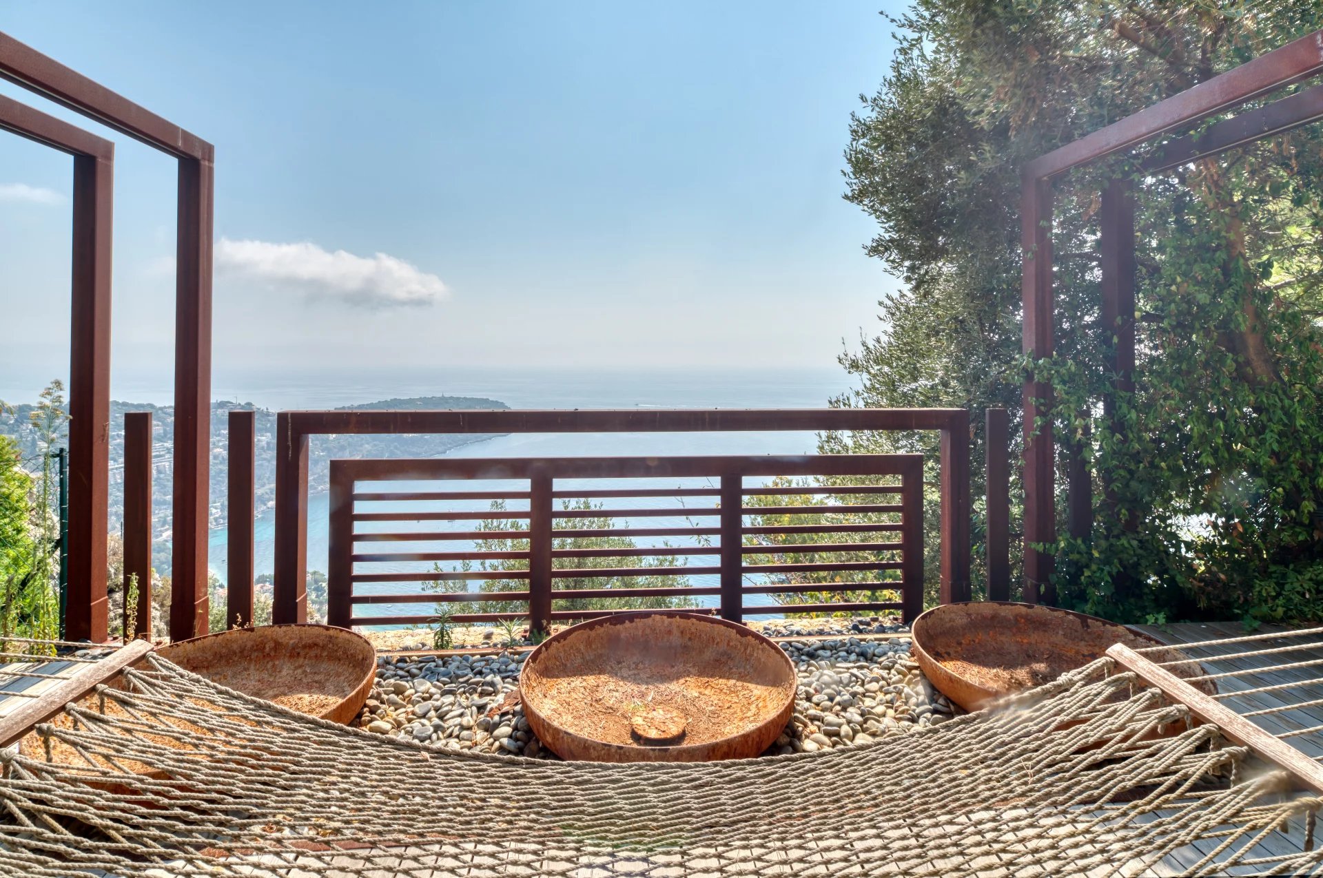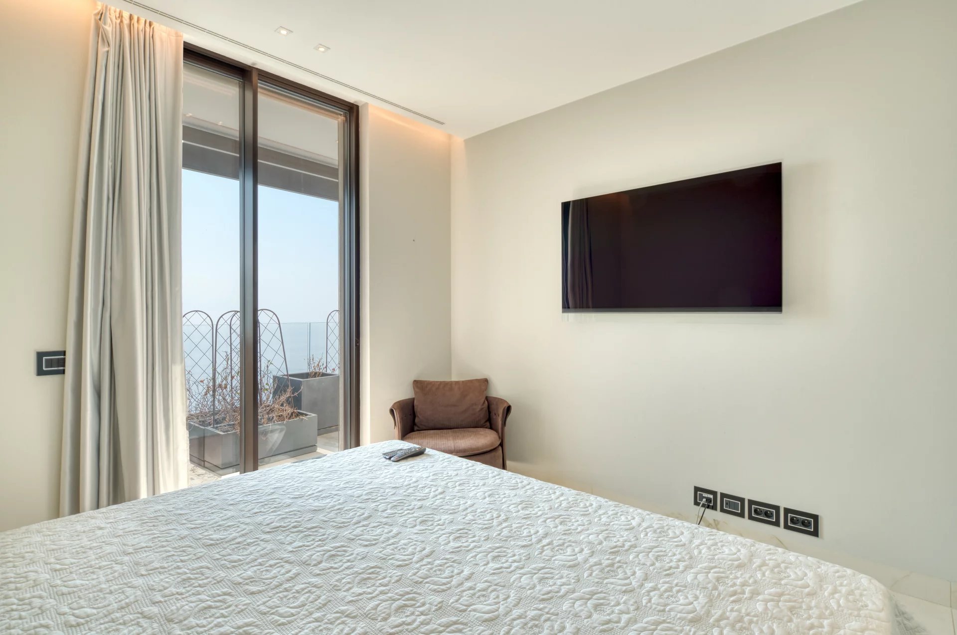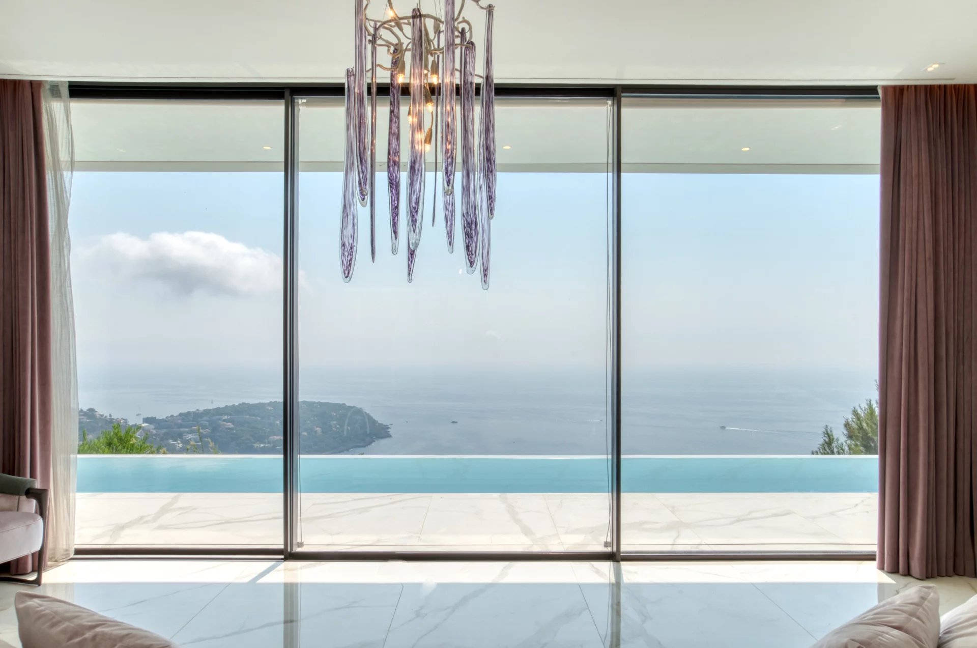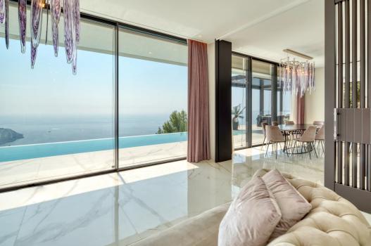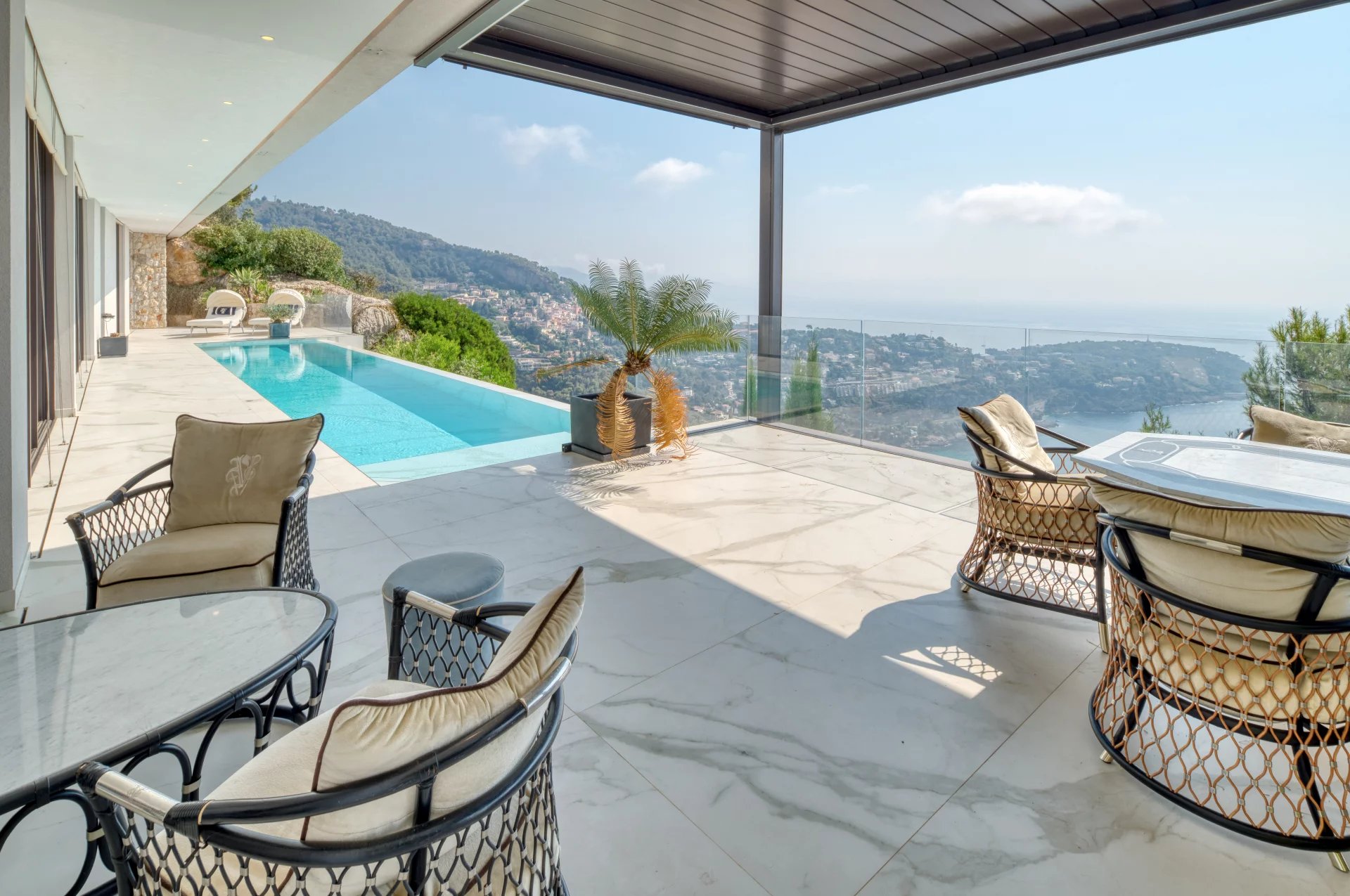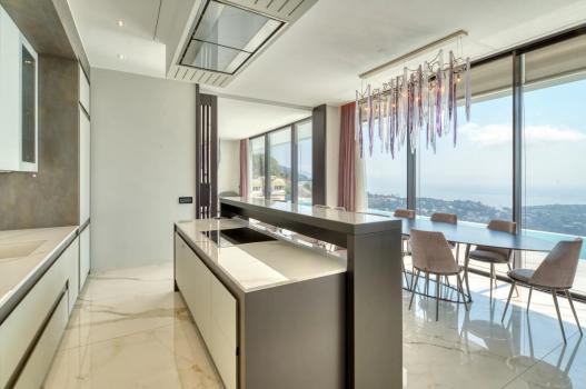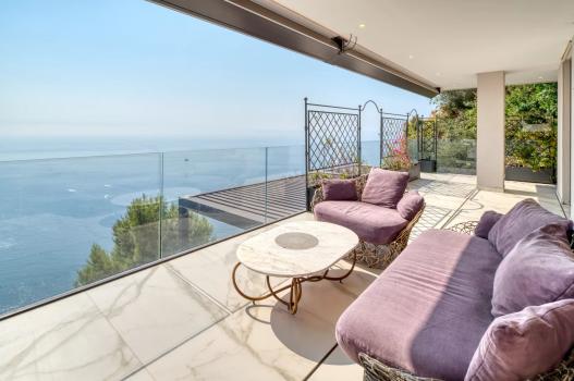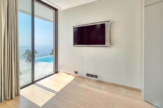 ROQUEBRUNE-CAP-MARTIN, 5 minutes from Monaco, quiet, panoramic view 180°, sumptuous property of a living area of 570 m2 built on landscaped land of 3,780 m2, large garage, parking and heated infinity pool. The villa with contemporary style and large windows, with high-end finishes is on 3 levels easily accessible by elevator. It consists of 7 bedrooms all en suite and 8 bathrooms, with many relaxation areas, gym, jacuzzi, sauna, hammam.