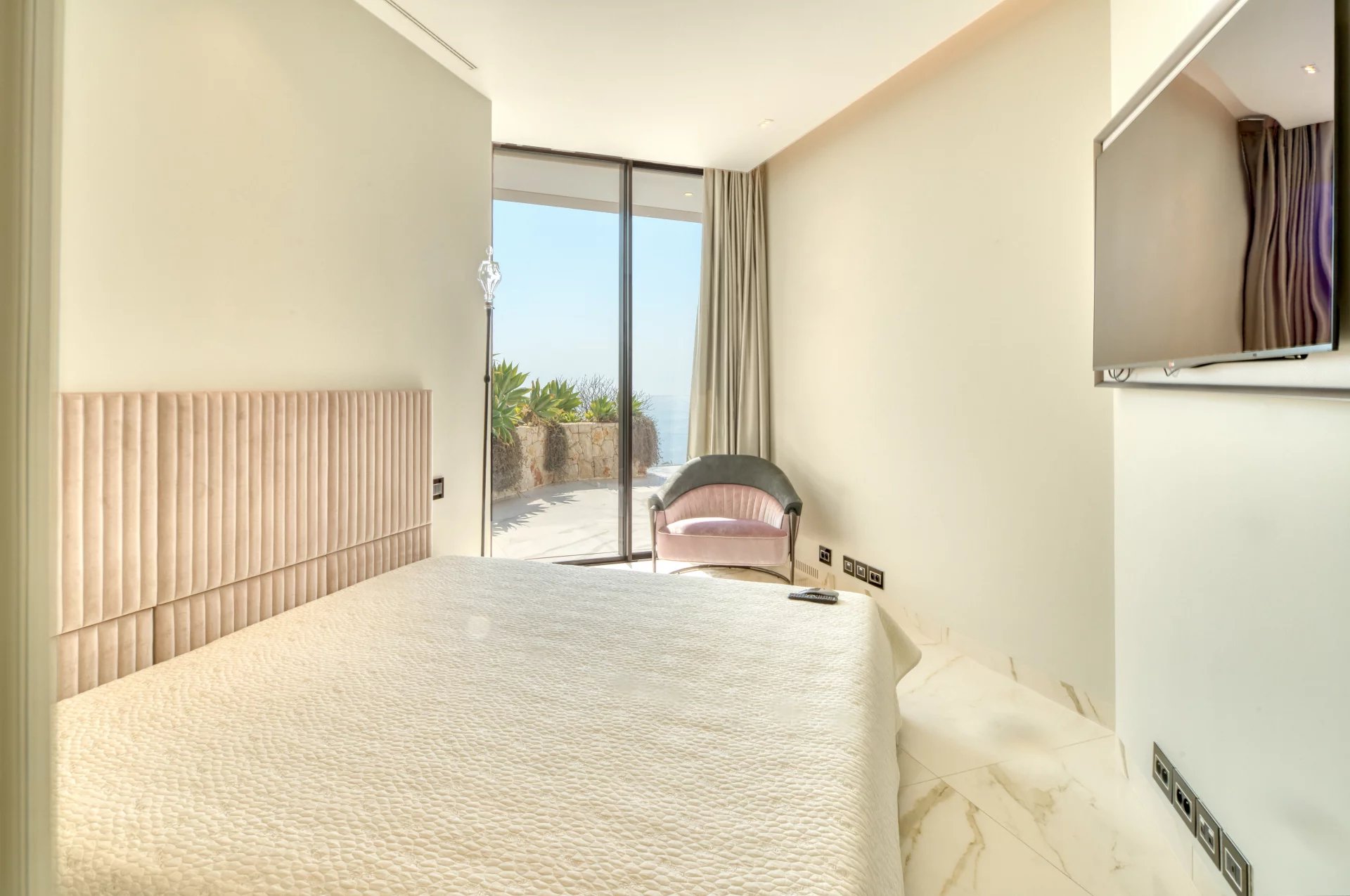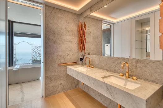 Upstairs, the master suite has a dressing room, private living room, large bathroom and terrace with sea views. A second bedroom in suite completes this level.