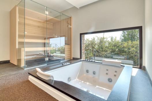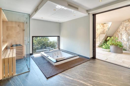 On the ground floor, a temperature-controlled wine cellar, an equipped gym and a wellness area with jacuzzi, hammam, sauna and massage room offer an ideal setting for relaxation. An independent apartment, perfect for staff or guests, has its own access. From this floor, you can access the gardens and a rest area facing the sea.