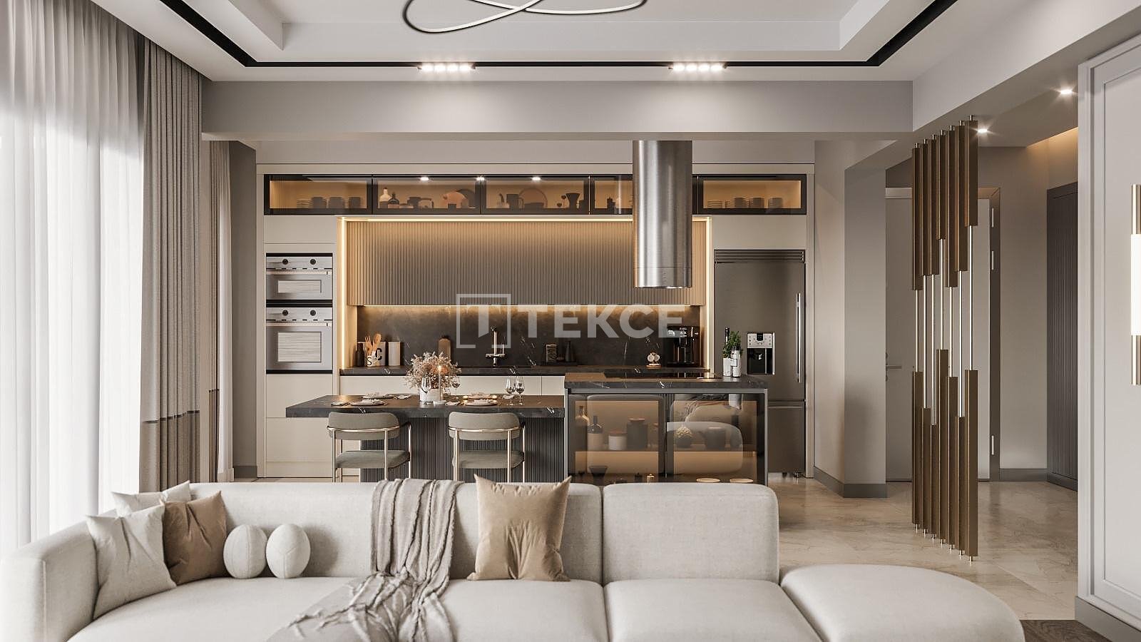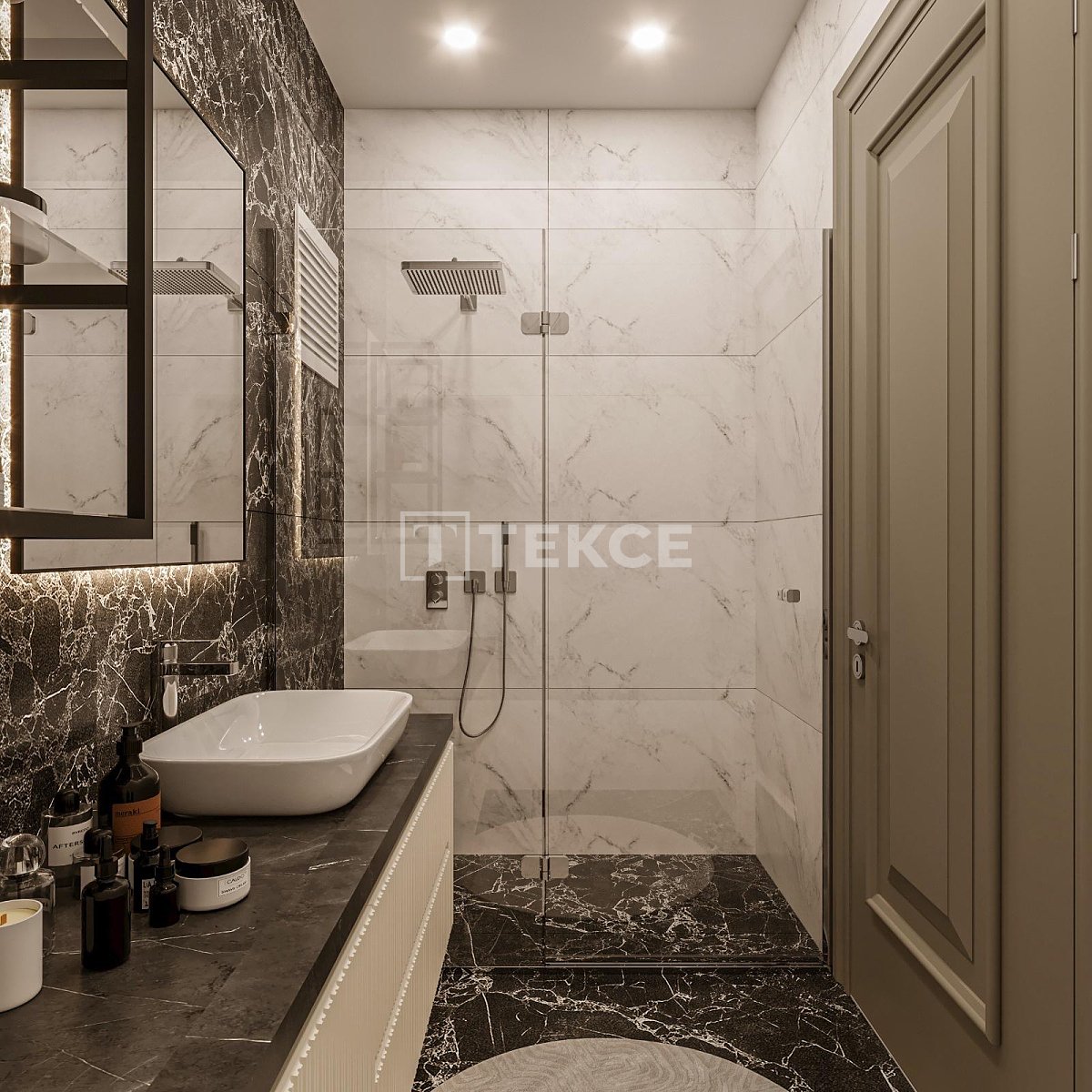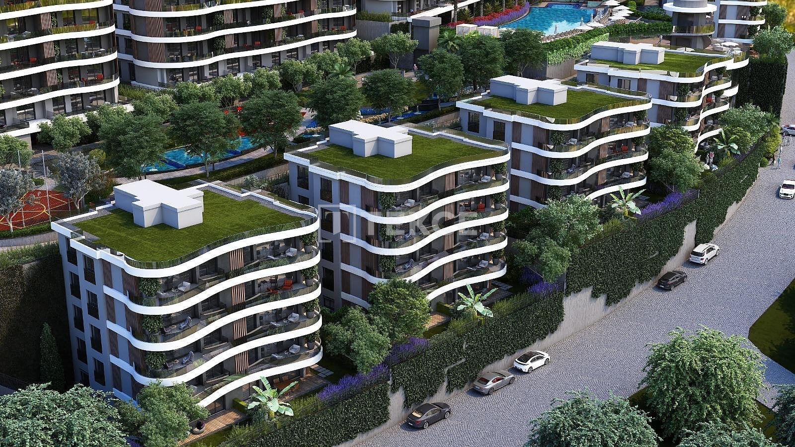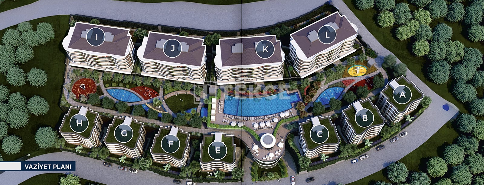 The project is built on a 13,538 m² plot and is designed for comfortable year-round living. It offers a wide range of amenities, including 24/7 security with surveillance cameras, swimming pools for adults and children, sunbathing terraces, gazebos, landscaped gardens, a children's playground, decorative pools, basketball courts, an electric vehicle charging station, a Turkish bath, a sauna, and large parking areas.