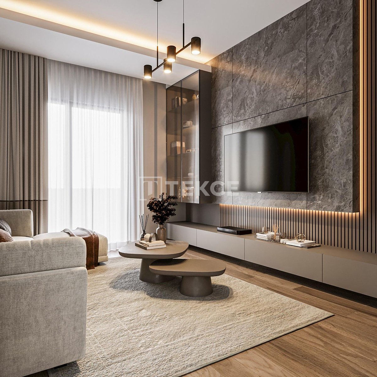The apartments for sale in Kuşadası Turkey are 50 m from the supermarket, 500 m from the sea as the crow flies, 2.9 km from the beach and shopping center, 3.9 km from the marina, 4.5 km from the private school, 22 km from the ancient city of Ephesus, and 71 km from Adnan Menderes Airport. The project is 500 m from the sea and 60 m above sea level, offering an unobstructed sea view.