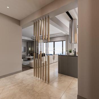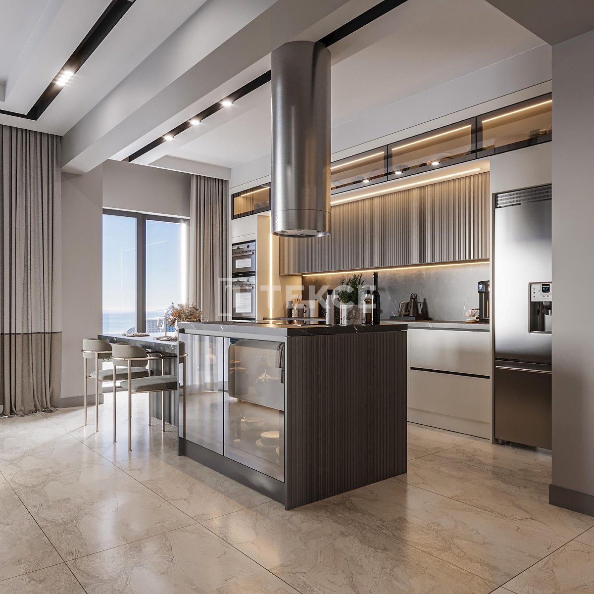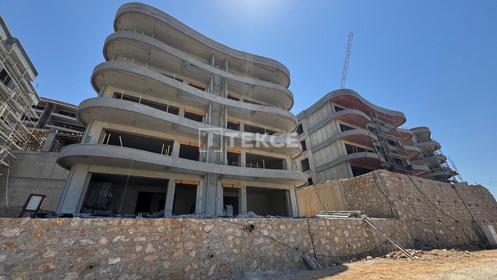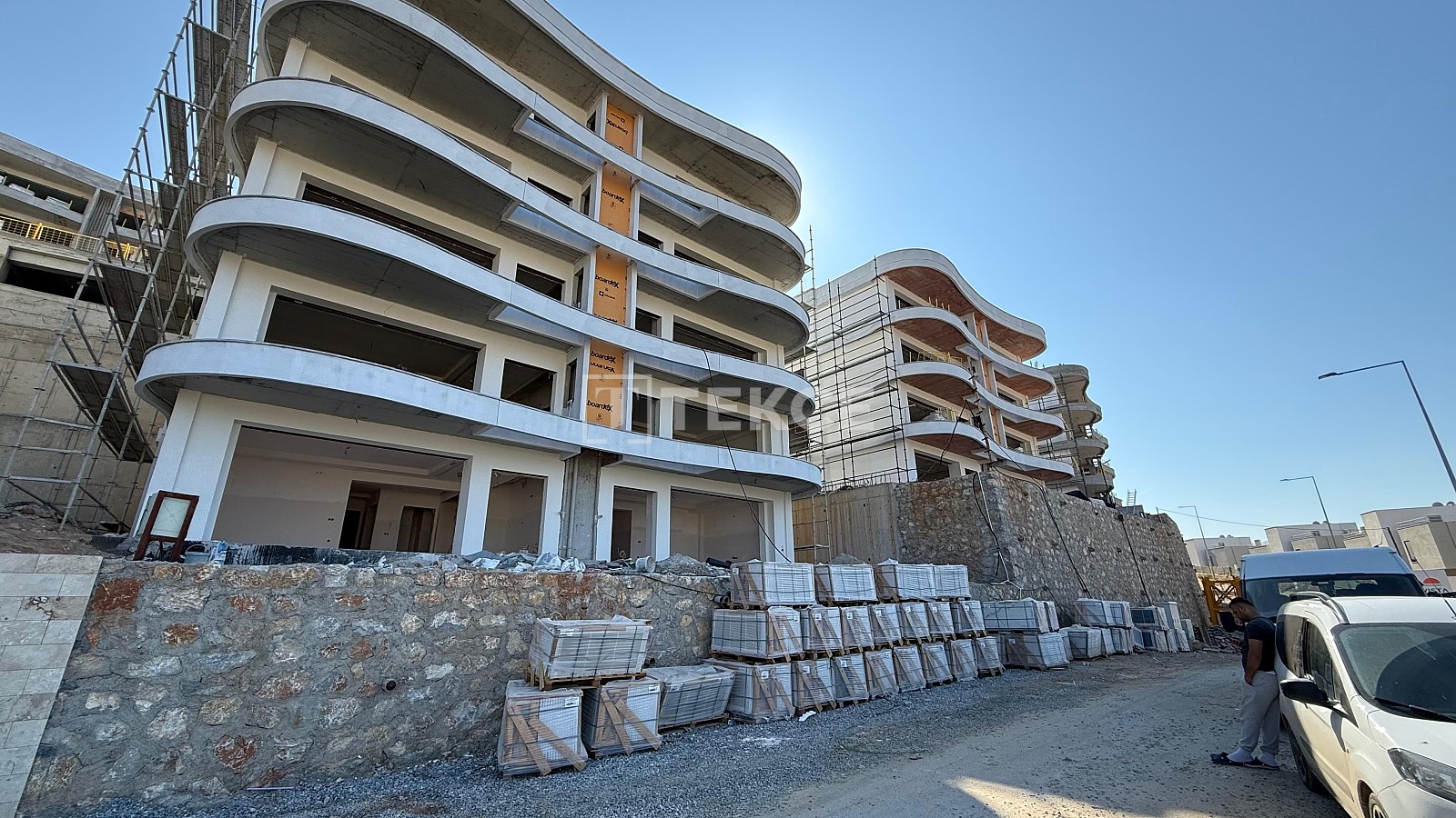 The apartments are designed with special thermal insulation, high-quality modern exterior cladding, and large balconies offering uninterrupted sea views. Inside, they feature a spacious living room, an open-plan kitchen, comfortable bedrooms, and an en-suite bathroom. Other interior details include ceramic flooring, a natural gas underfloor heating system, air conditioning infrastructure, premium kitchen cabinets, lacquered interior doors and bathroom cabinets, a built-in wardrobe, a high-quality steel entrance door, and large insulated aluminum-framed windows.