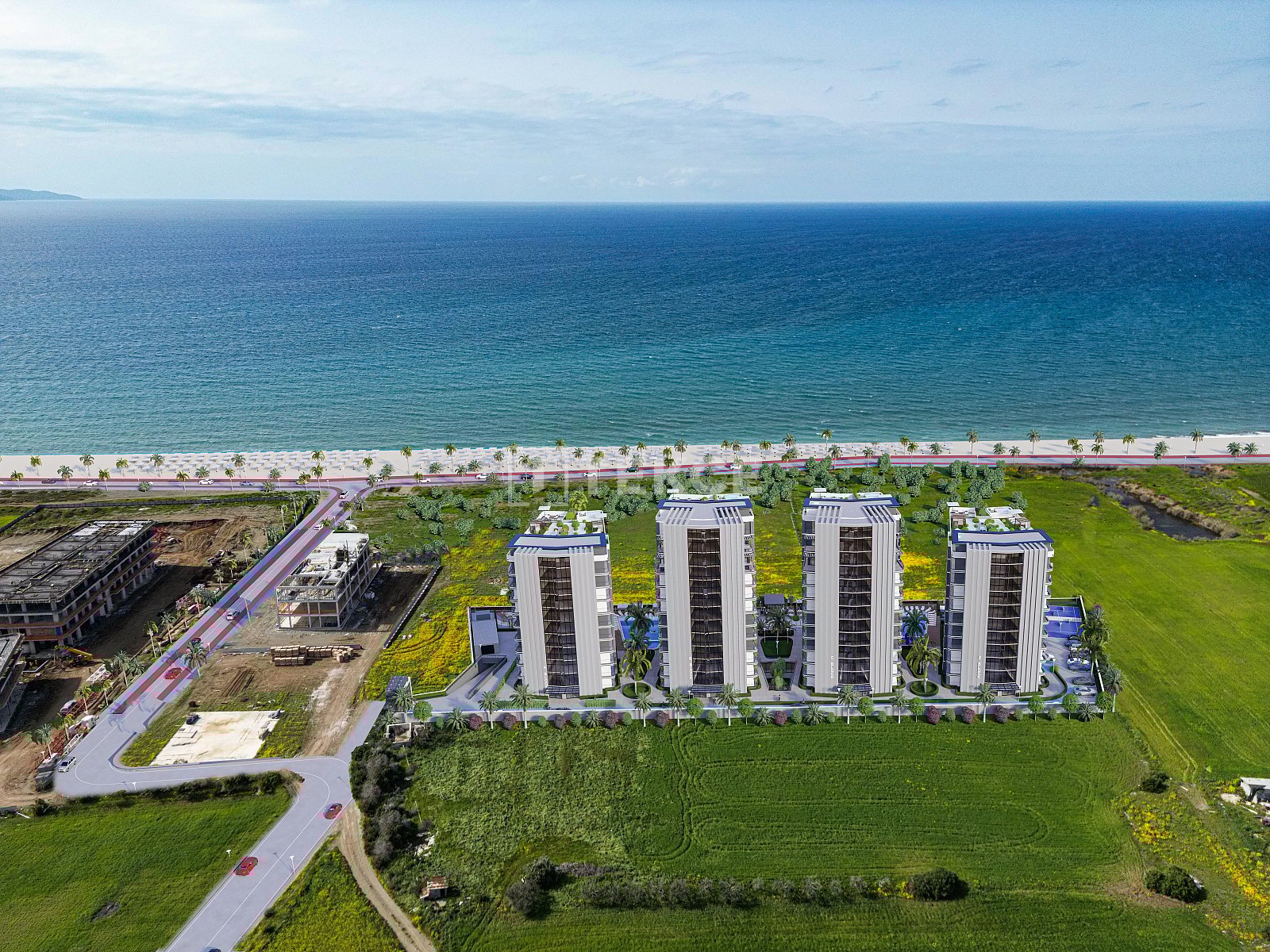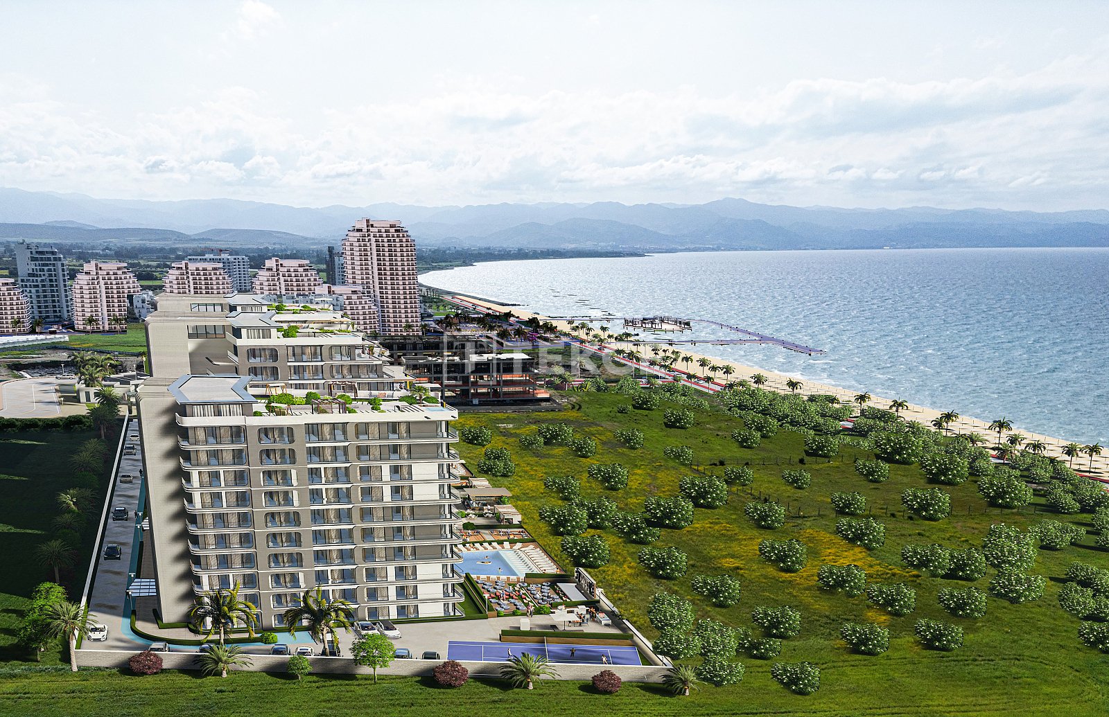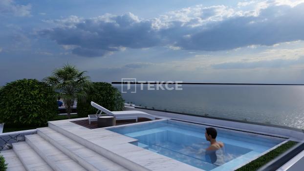 Located within a complex offering advanced amenities, the apartments provide sea views starting from the ground floor. At the entrance of the complex, there is a barriered security checkpoint, security cameras, and a dedicated parking space for each vehicle. On the basement floors, there are various facilities, including various play areas, a gym, a library, study and meeting rooms, a childcare area, a spa, a sauna, and a Turkish bath. Additionally, the on-site restaurant, bar, and cafe allow residents to comfortably enjoy both social and professional life without leaving the complex.