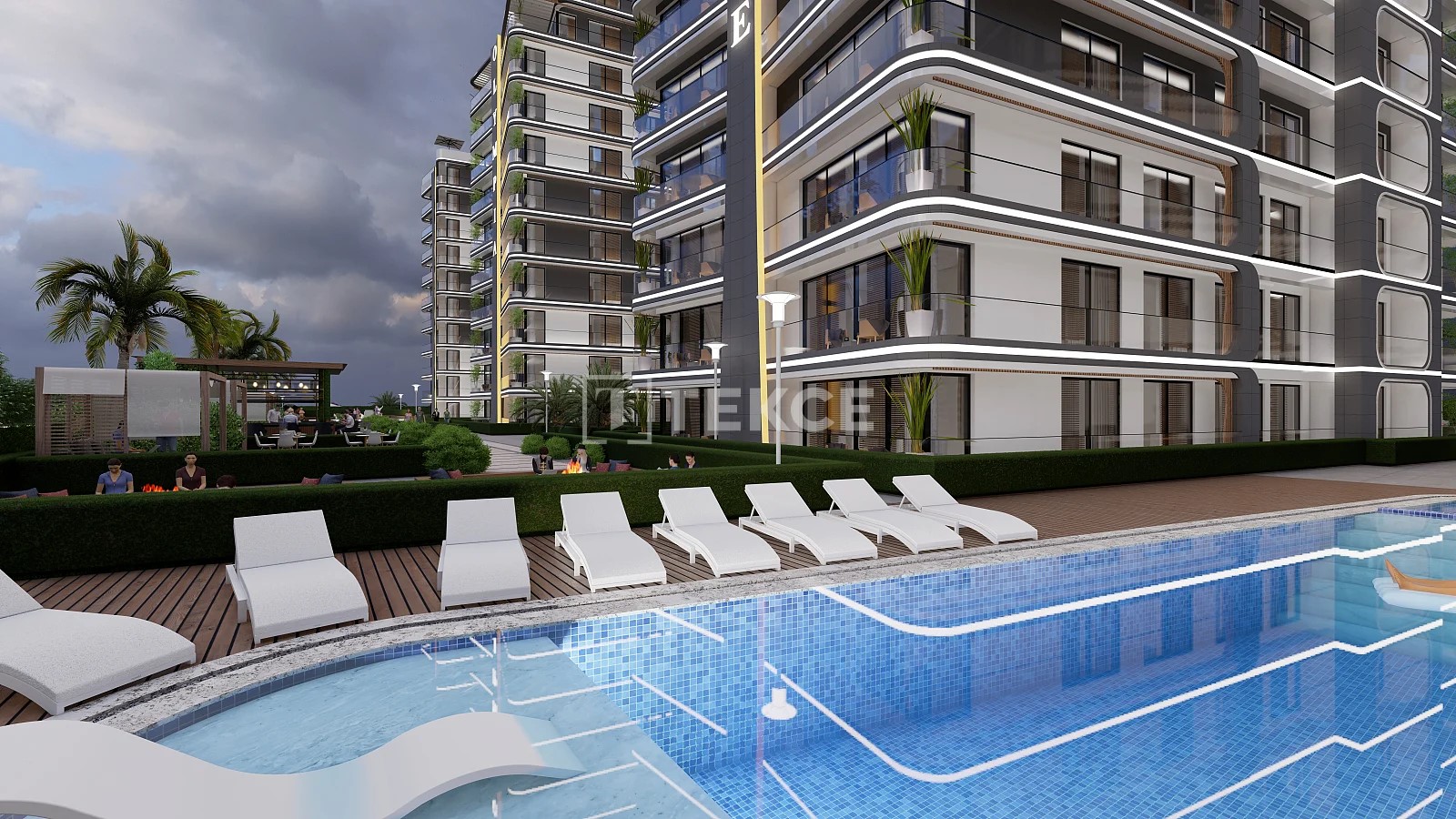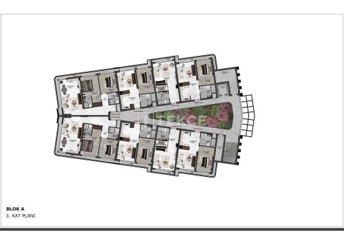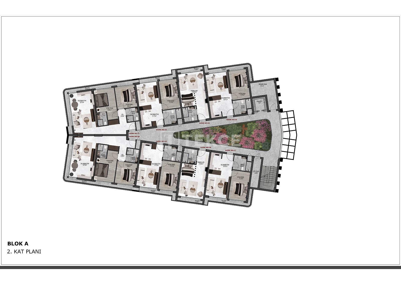 Built with high-quality materials, these properties offer high rental income potential for short-term rentals. Special moisture- and heat-resistant, non-slip ceramics are used for wet floors, while comfort-enhancing features include a central satellite system, internet infrastructure, video intercom, and air conditioning setup. The penthouses on the top floors of each block include spacious terraces with a hobby garden area and pool. Located in an area with shopping centers, hotels, casinos, and hospitals, the complex benefits from numerous amenities that add value to the region.