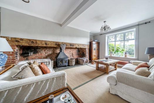 STEP INSIDE:- - The superbly presented accommodation combines traditional cottage charm with contemporary elegance. A lovely, welcoming entrance hallway with a central oak beam and slate flooring opens from a charming, oak framed entrance porch with reclaimed flagstone flooring. The characterful living room, in the original part of the house, has a spectacular brick-built open fireplace with an oak beam over and a reclaimed flagstone hearth, on which there sits a Villager log burning stove. The room has a central, painted beam. A large window overlooks the front of the property and at the rear, a glazed door opens to the dining room. On the wall next to this door, a feature has been made of an old bread oven door.
