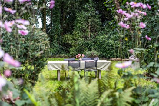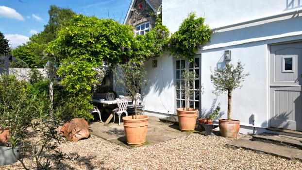 Lying to the side of the house is a level lawned area, featuring mature shrubs, such as hydrangeas and a variety of trees, including fruit trees, eucalyptus and several pretty magnolias. "The lawn is on the southern side of the house and it is a sunny spot to sit out in the daytime. In the evenings the sun moves round to the back of the house where the courtyard garden is and that makes a sheltered sun trap for a sundowner."