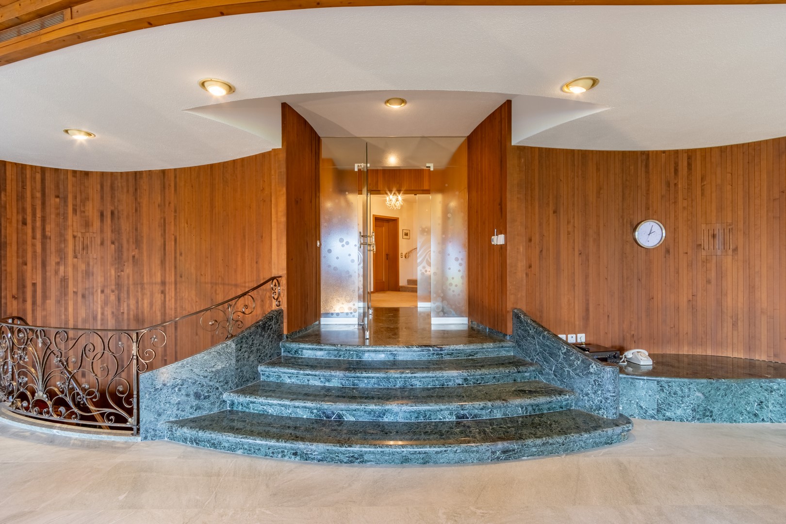- Extravagant interior design with the finest materials, mostly from the construction period