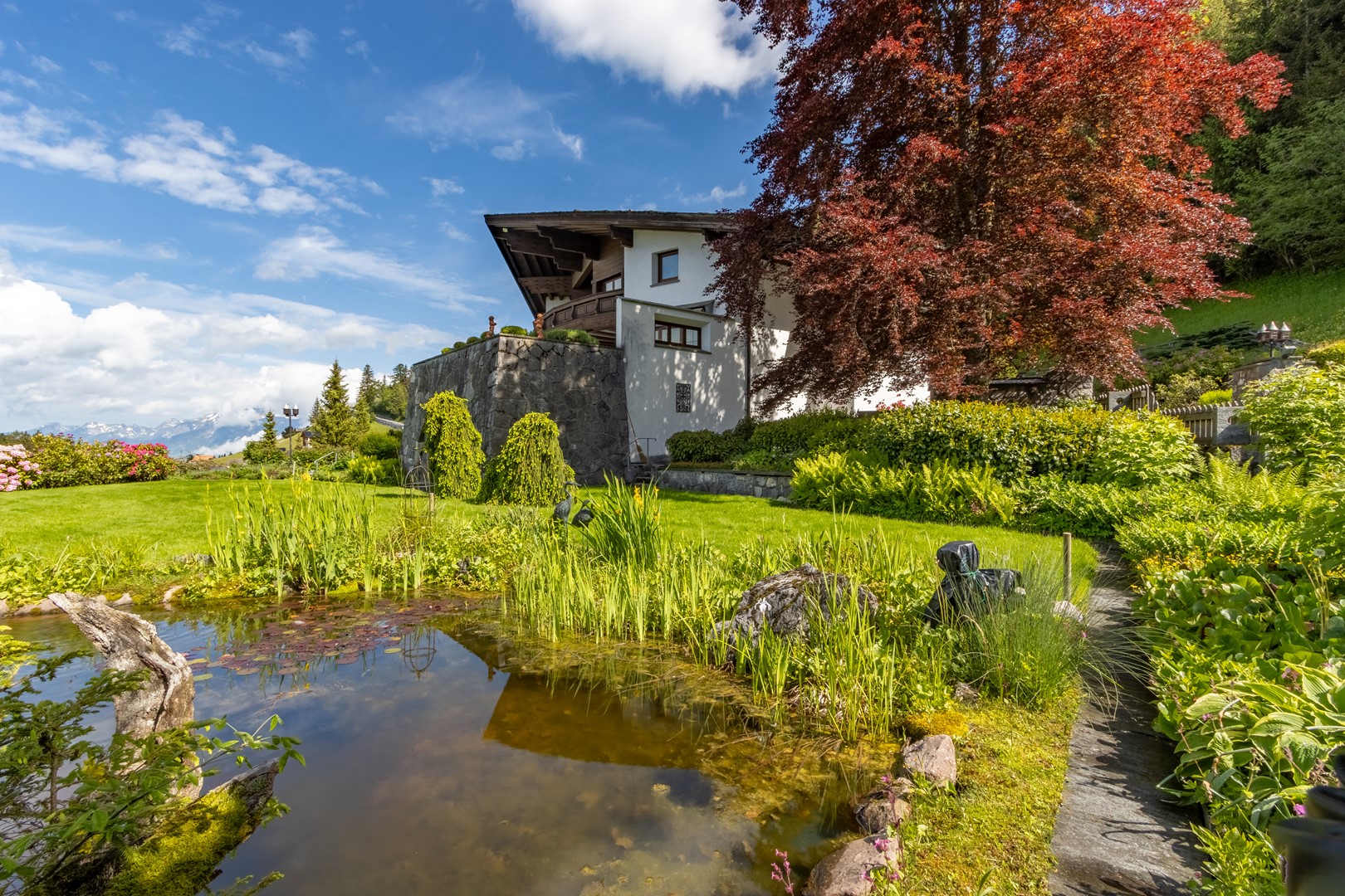 - Spacious, very well-kept garden with pond and various seating areas