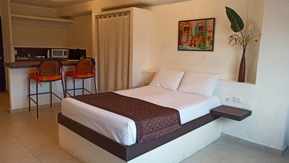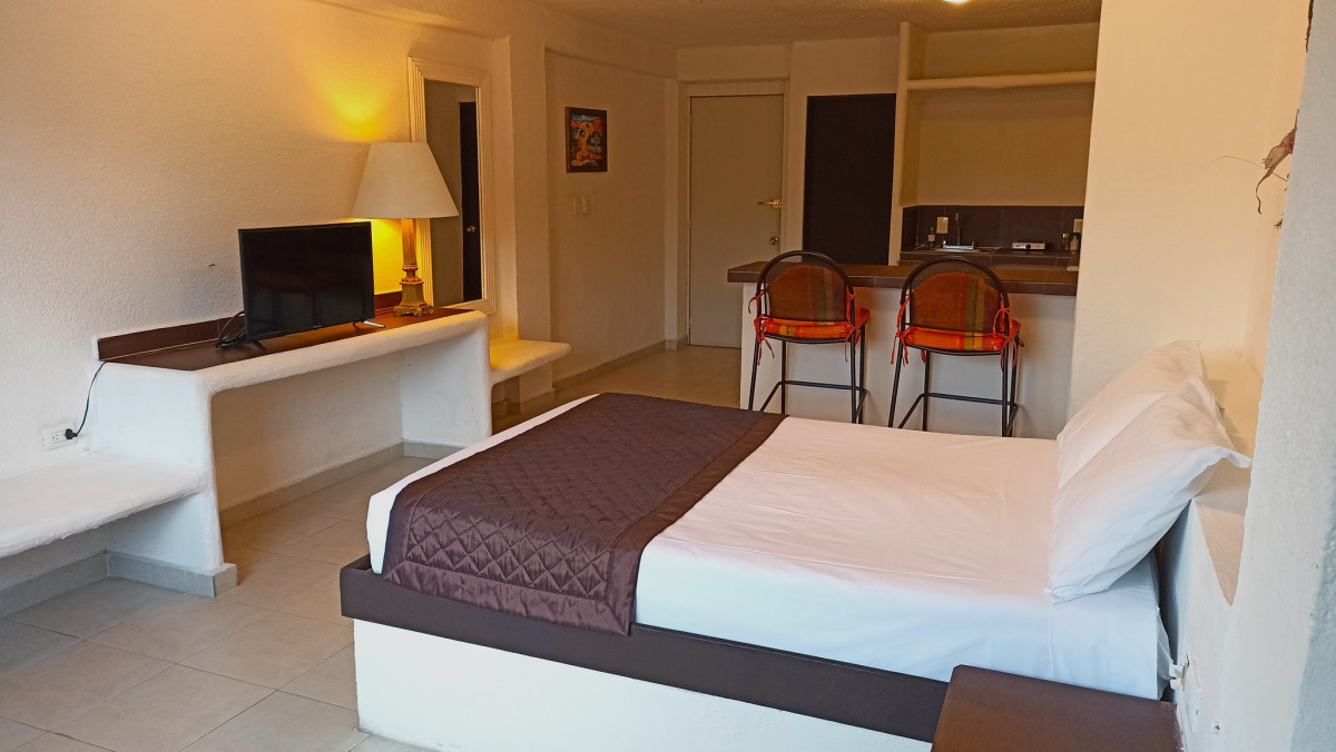 - 16 rental units, each with a private bathroom, kitchenette, and air conditioning.