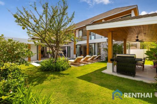 Stunning 4-bed, 4-bath villa in QAV Residence, Thalang, Phuket. Enjoy leasehold, fully furnished living with private pool, garden, high rise views. Pet-friendly with European kitchen. Your dream home awaits