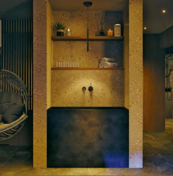 Switch off after a long day and enjoy the tranquil ambience of Gilda’s relaxation area, offering an even mix of hanging chairs, recliners, and lounge chairs located on the spa’s terrace overlooking Andermatt and the Alps.