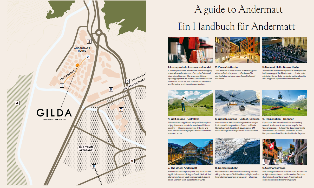 Step into a sophisticated Swiss Alpine village set in a storybook mountain landscape, where inspiring adventures await (indoors and out). Andermatt invites you to embrace pristine ski slopes, golf on the award-winning championship course, and hiking through sunny Alpine meadows to nearby forests and waterfalls. Indoors, meet friends in a chic boutique, steamy spa or Michelin-starred restaurant.