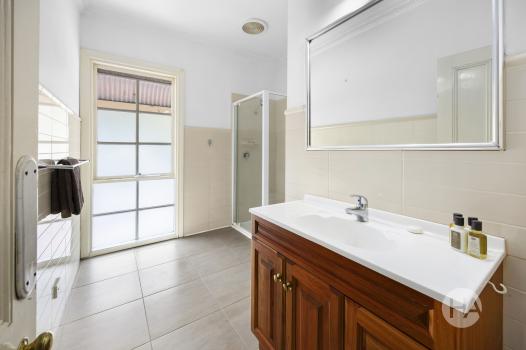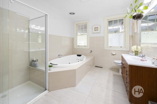 The master bedroom is extra-large with large walk-in robe and ensuite, a family bathroom has an oval spa bath, while the guest room with ensuite is in a separate wing that can be closed off for Airbnb accommodation with its own lounge, dining and second bedroom.