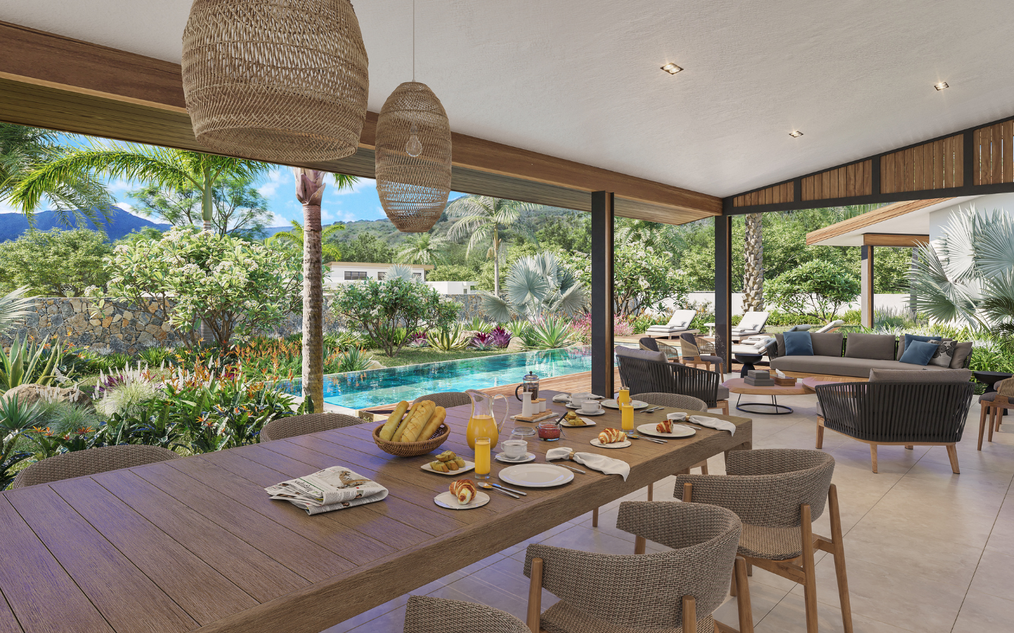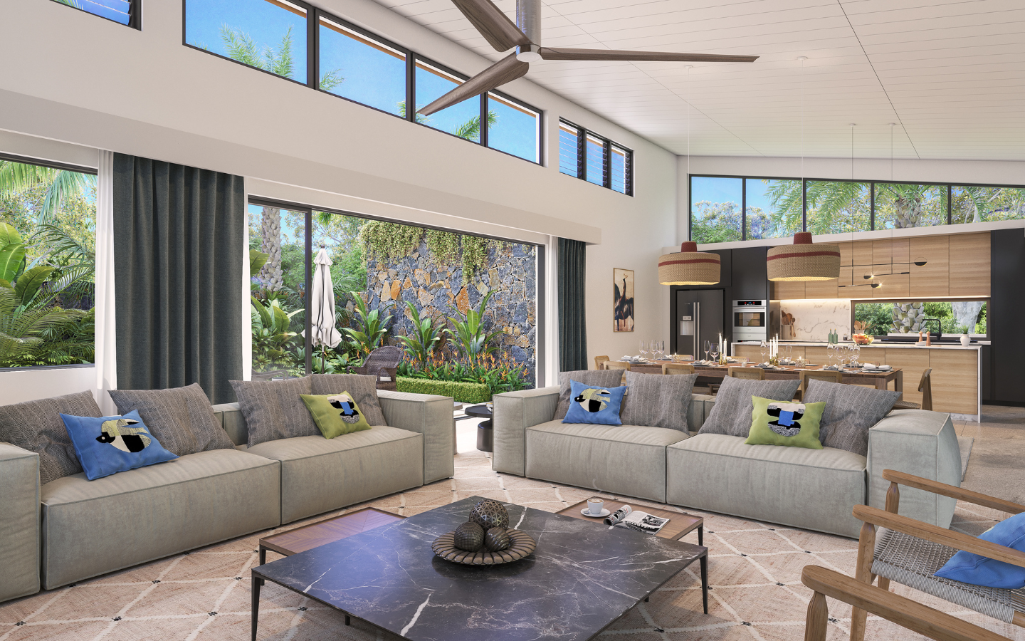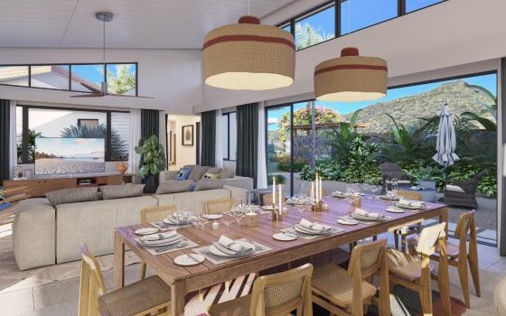 In addition, by investing in this villa, you benefit from exceptional taxation, a rental management service, a Mauritian resident permit and a concierge. The eco-responsible commitments of the estate as well as its design based on raw materials create an intimate atmosphere in harmony with nature.