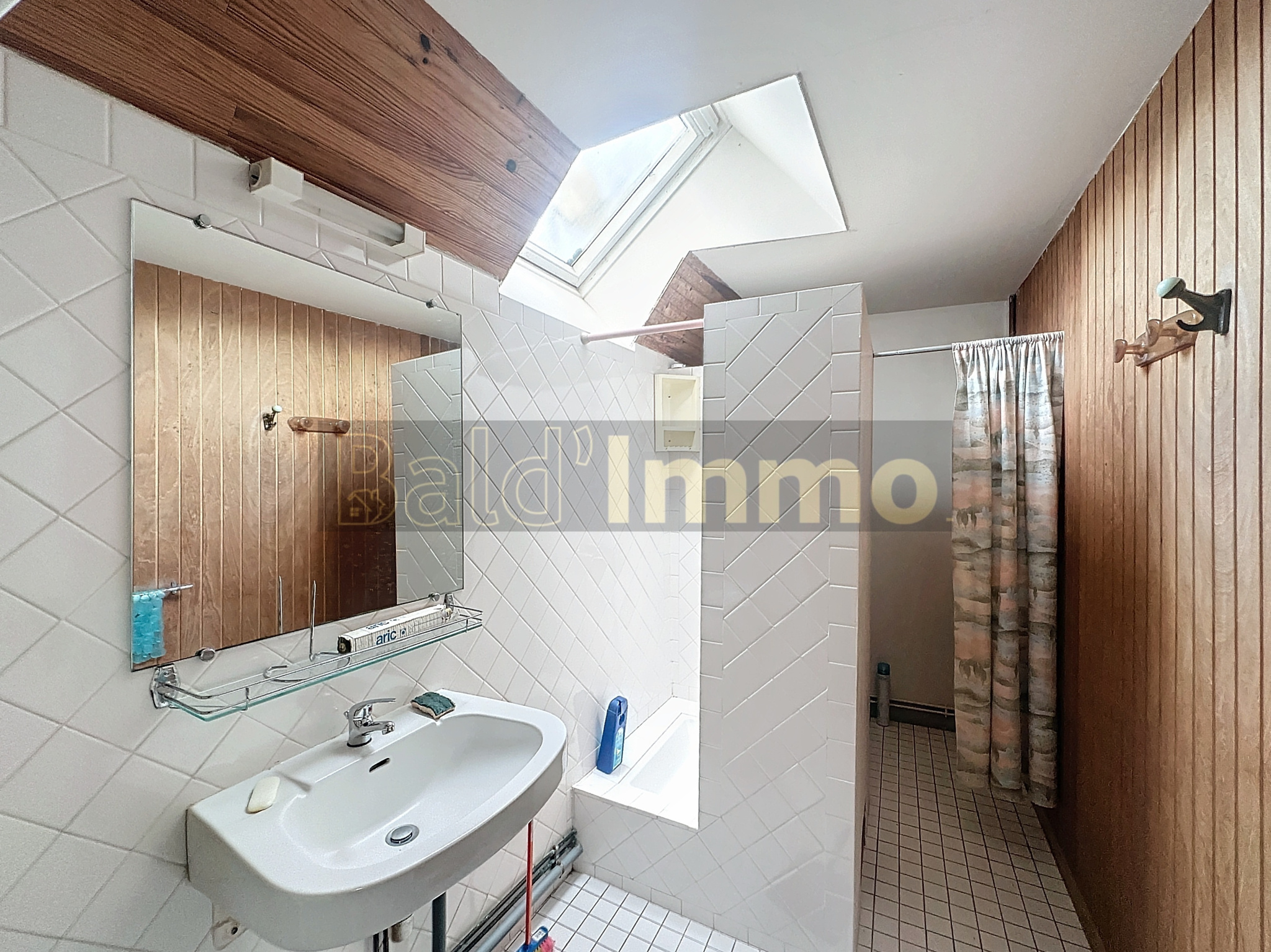 On the ground floor: an entrance, a living room with fireplace, a kitchen, a water point with WC.