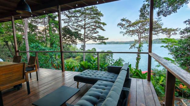 A stunning blend of West Coast modern design and tropical functionality, this elegant off-grid home is perched on a hilltop with breathtaking views of the sea and jungle. Fully equipped for sustainable living, it offers comfort, style, and seclusion—just 10 minutes from Bocas Town.