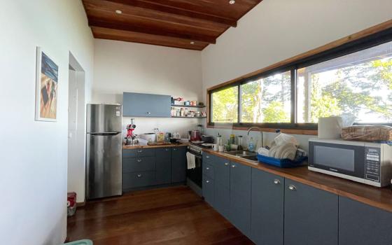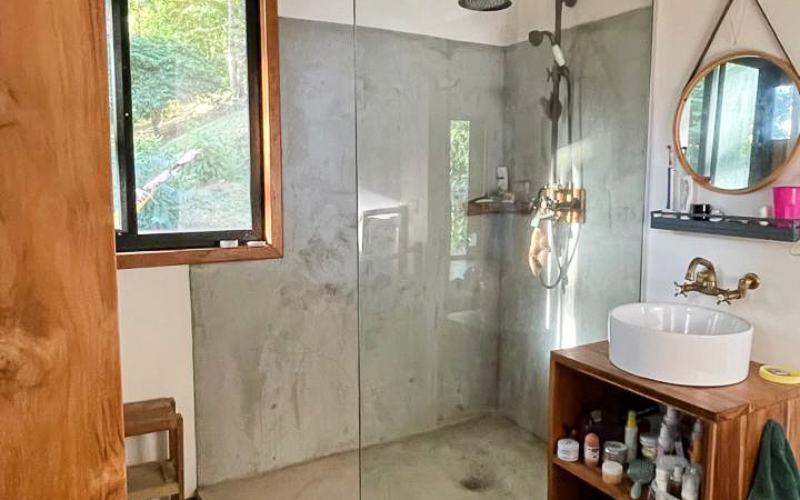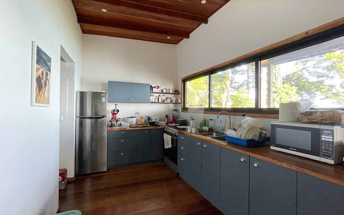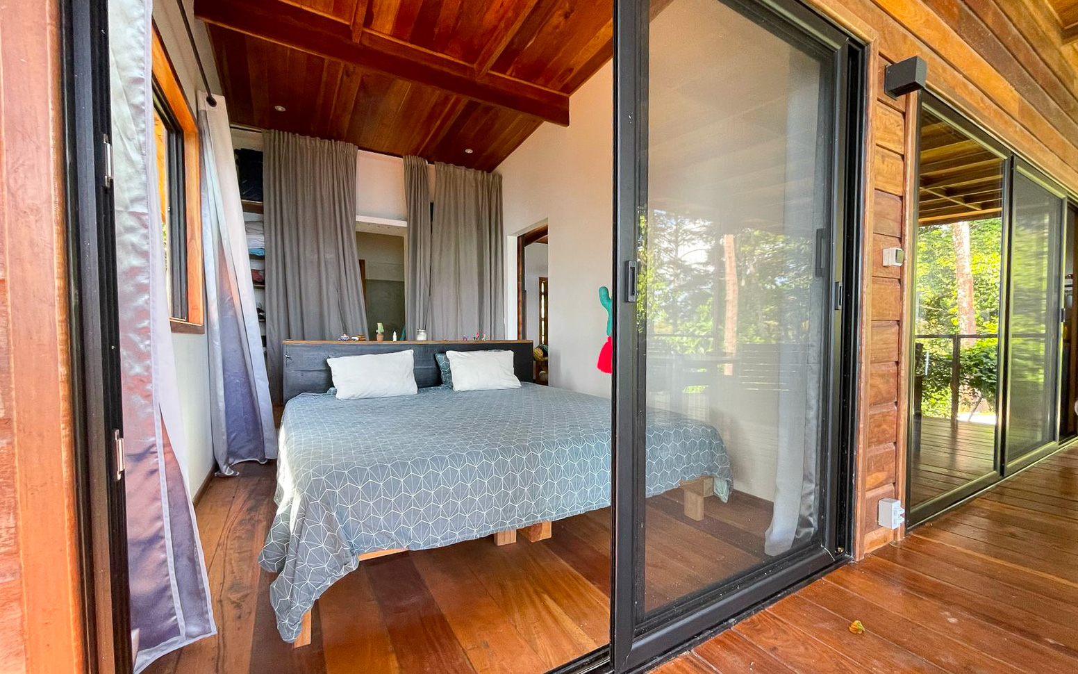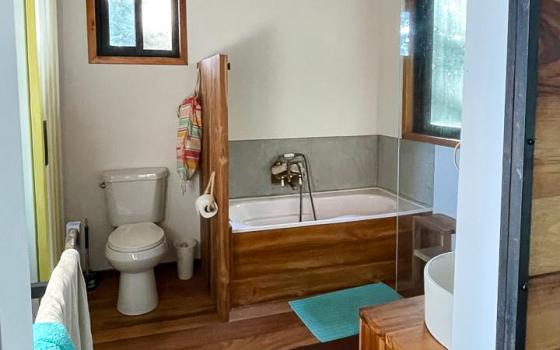 There are two spacious bedrooms, each with a private bathroom. The master suite includes an ensuite bathroom with a rare feature for off-grid homes—a bathtub. Positioned to capture the surrounding beauty, you can soak with views of the jungle and fall asleep to ocean breezes.