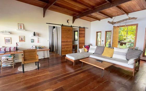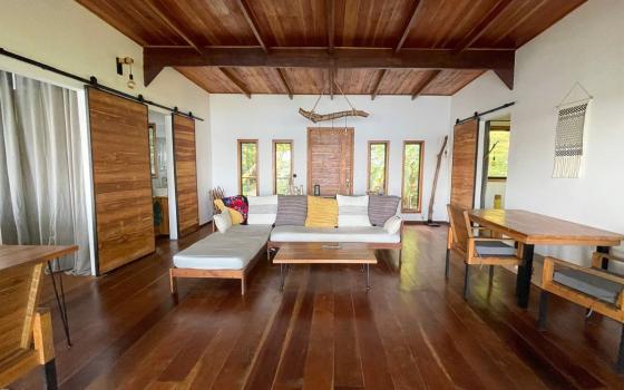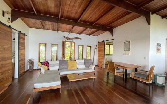 Built just three years ago, this beautifully crafted home is made of durable Almendro hardwood on a solid concrete foundation. Its open-concept layout includes a 30 m² covered terrace, teak furnishings, and expansive sliding doors that create a seamless indoor-outdoor flow.