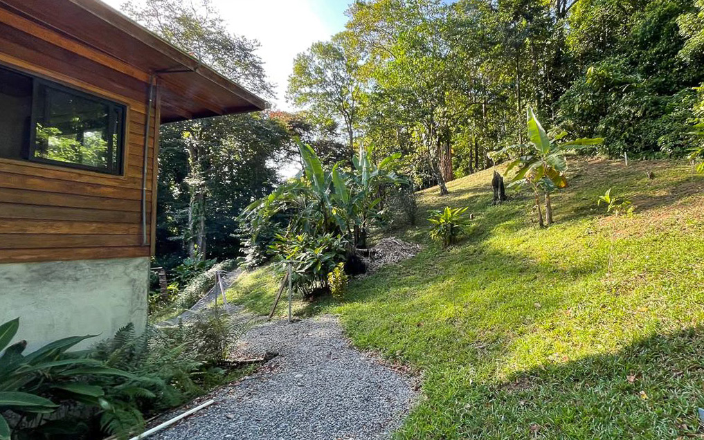 A thick concrete driveway leads to the home’s elevated build site, accessible by the included ATV. Behind the home, the property rises into the jungle, ideal for gardening, nature trails, or simply enjoying the lush backdrop.